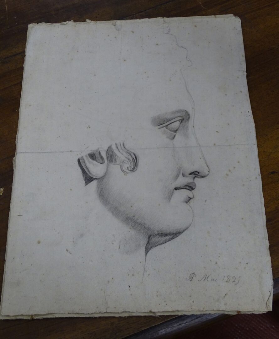 Profile drawing of a man's head dated May 1825 lower right. 40 x 31 cm