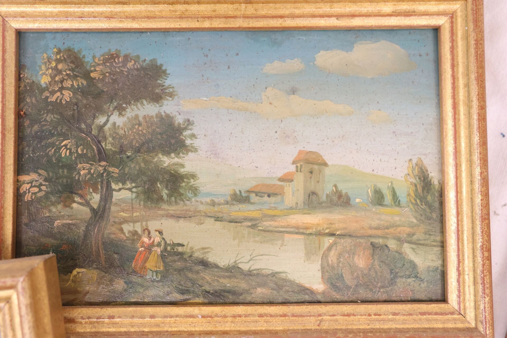 L. SALV? "Pair of oils on card signed lower right. 10 x 14 cm + two framed pieces