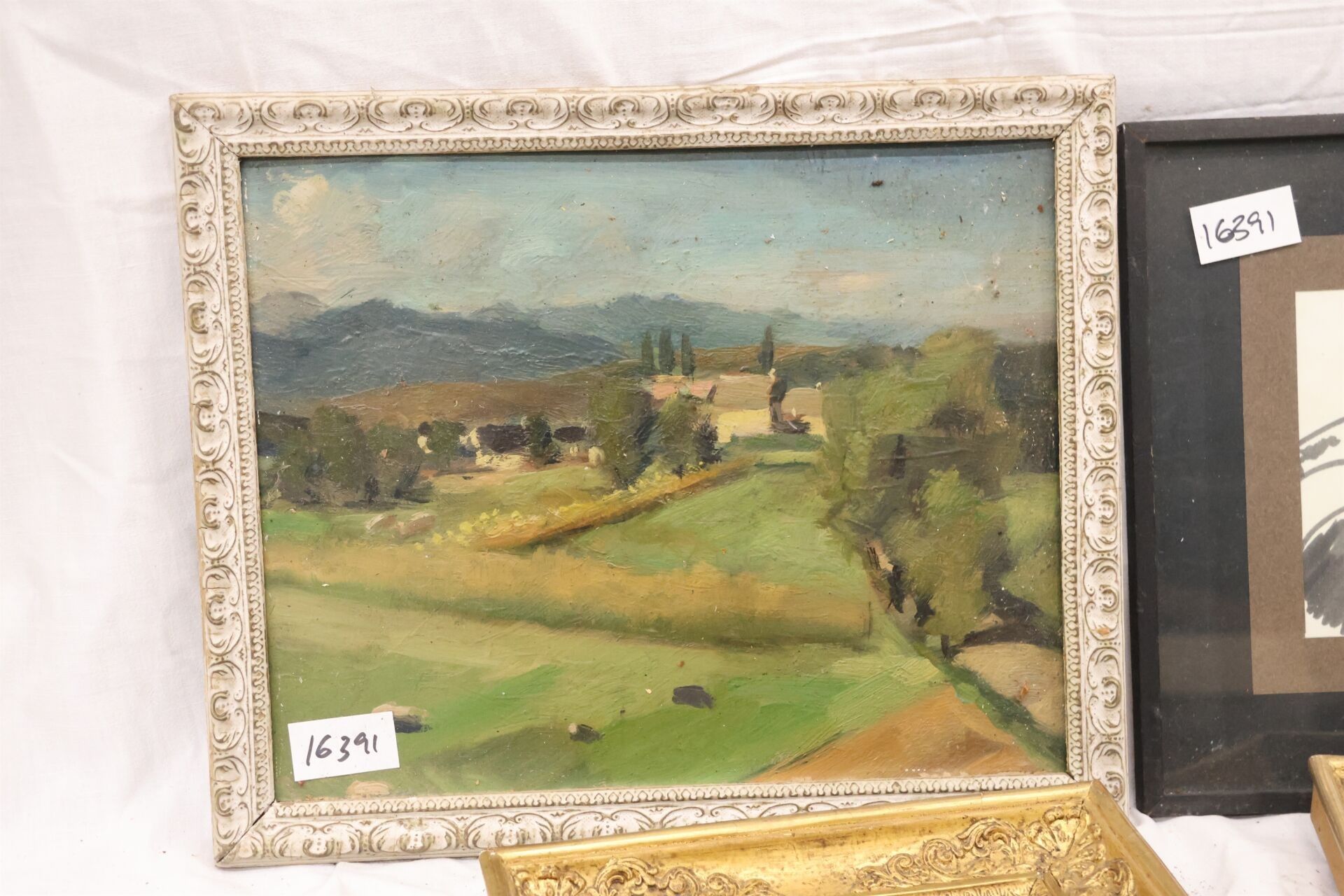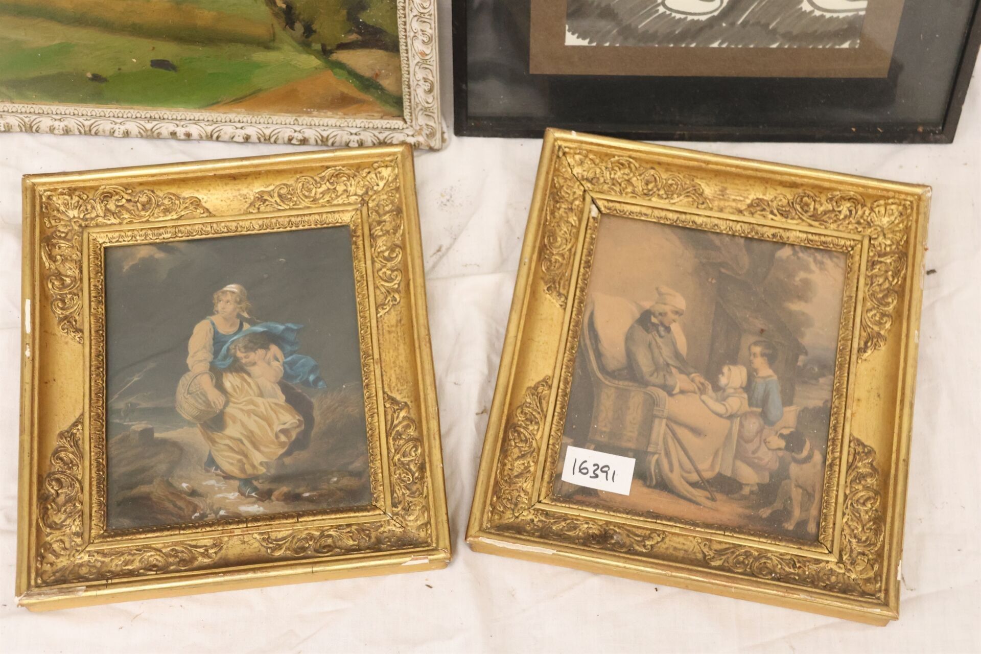 Four framed pieces, two with gilded stucco frames in the Cha…