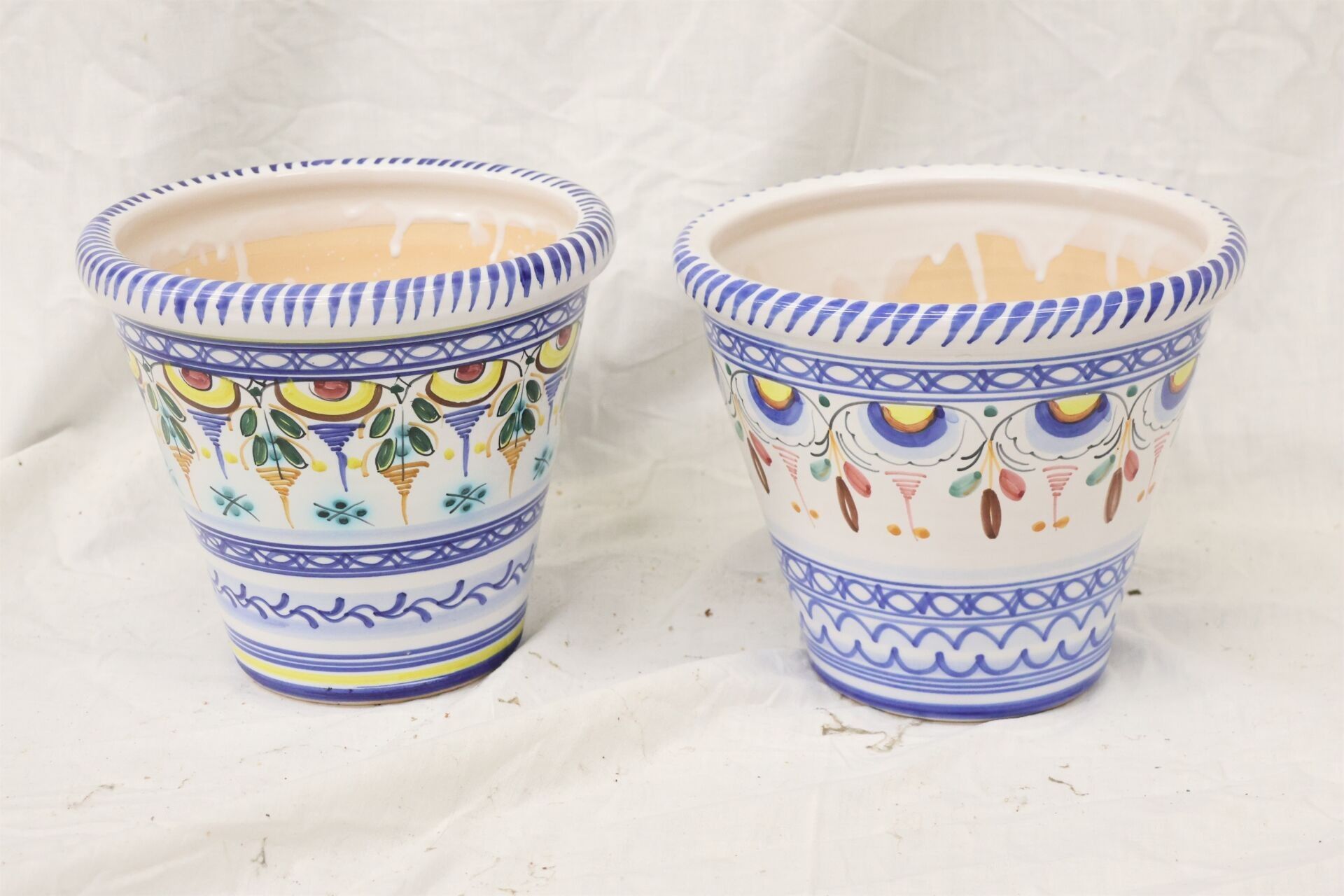 Pair of PUENTE polychrome earthenware cachepots. Modern 18 x 21 cm