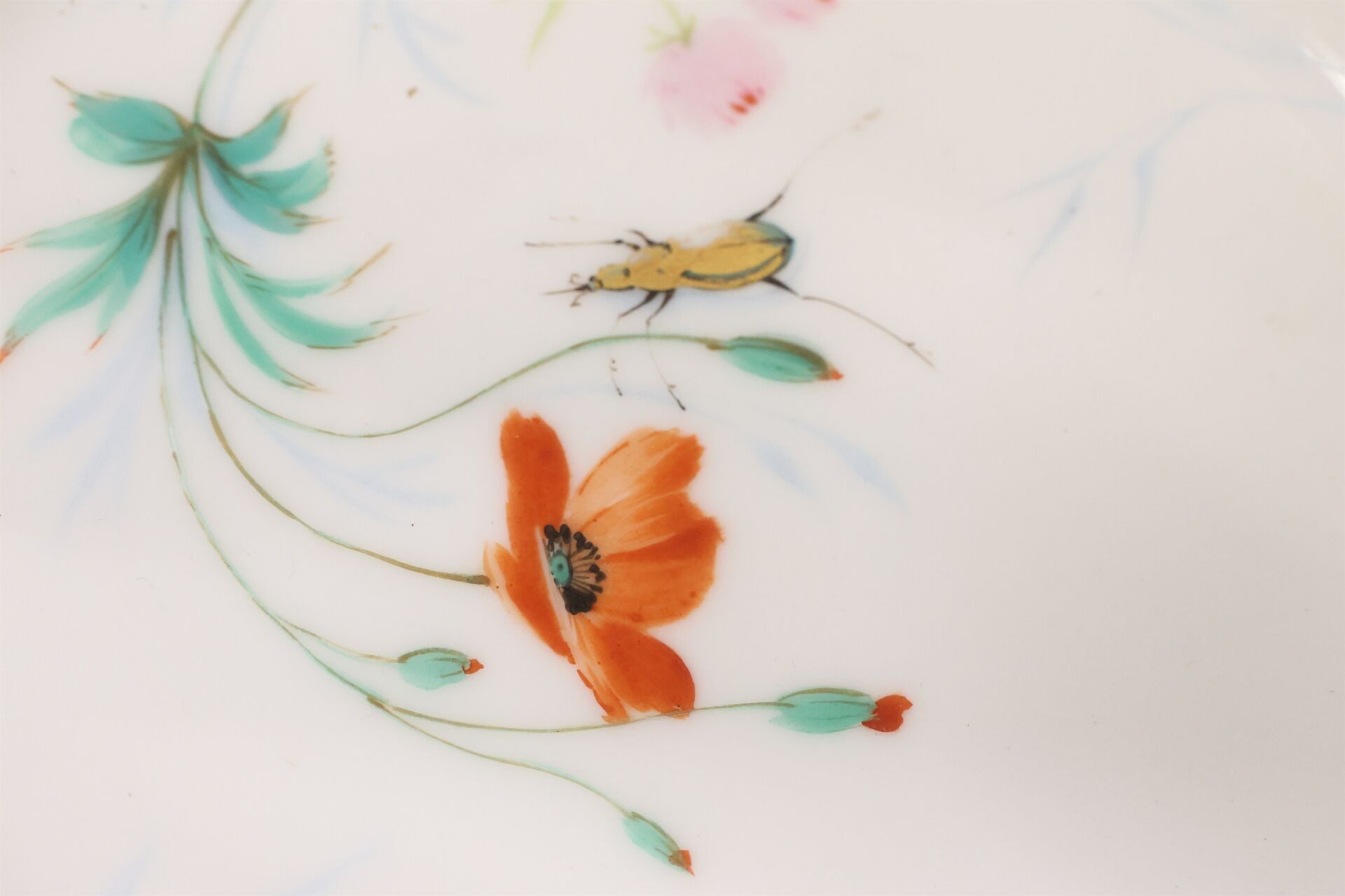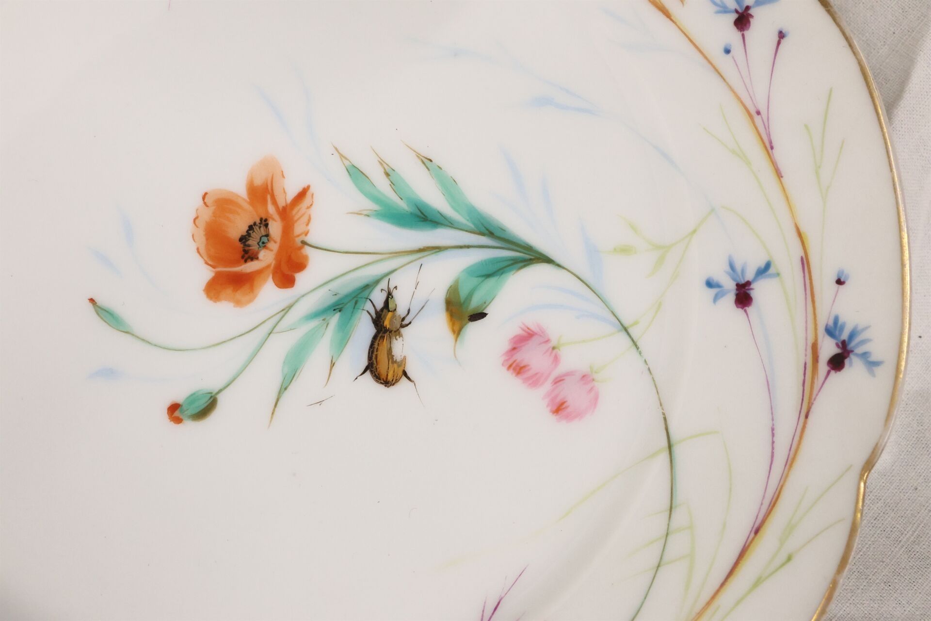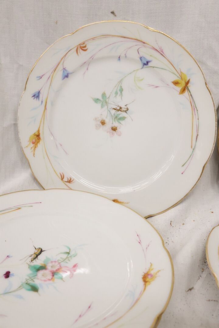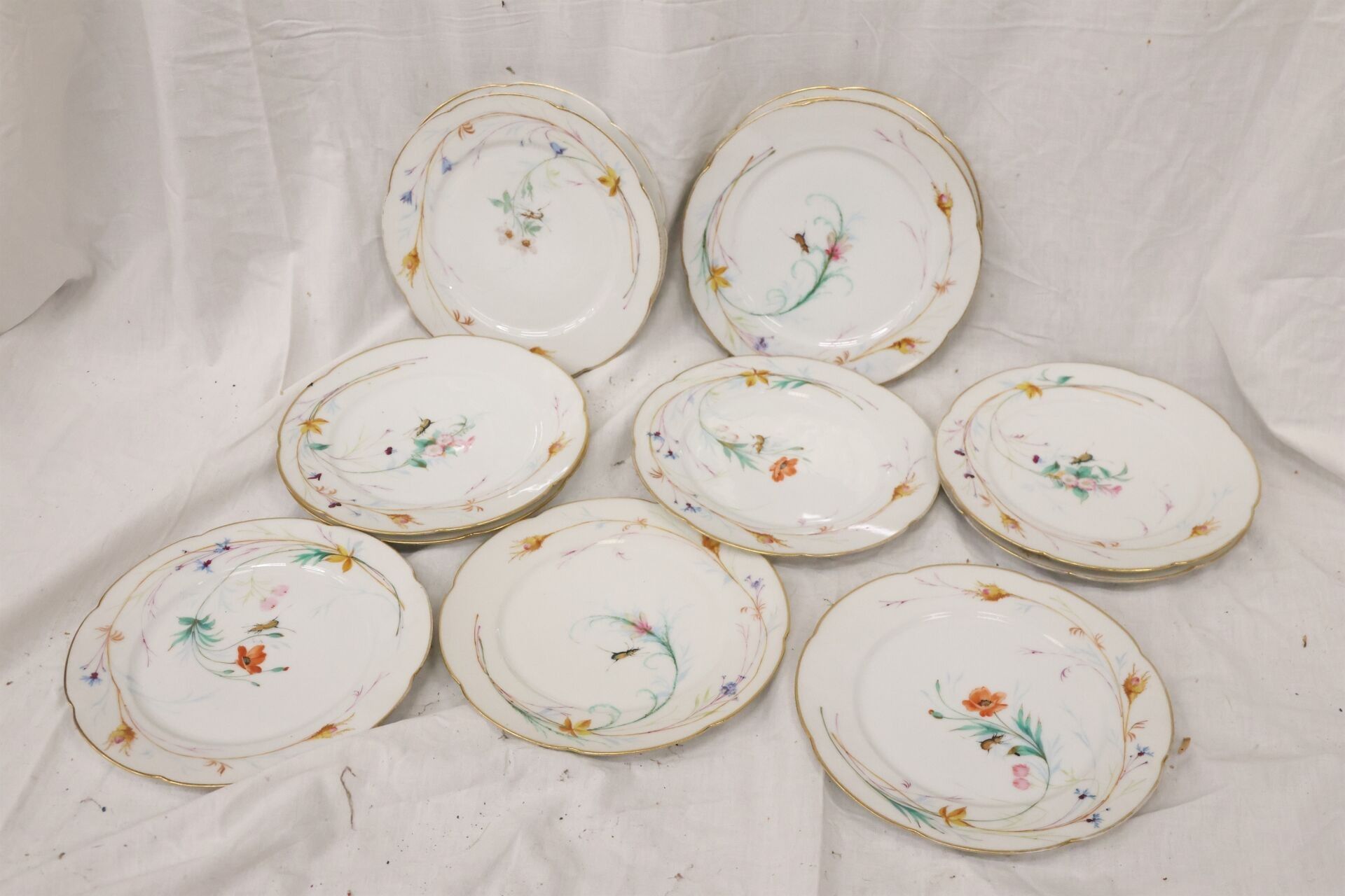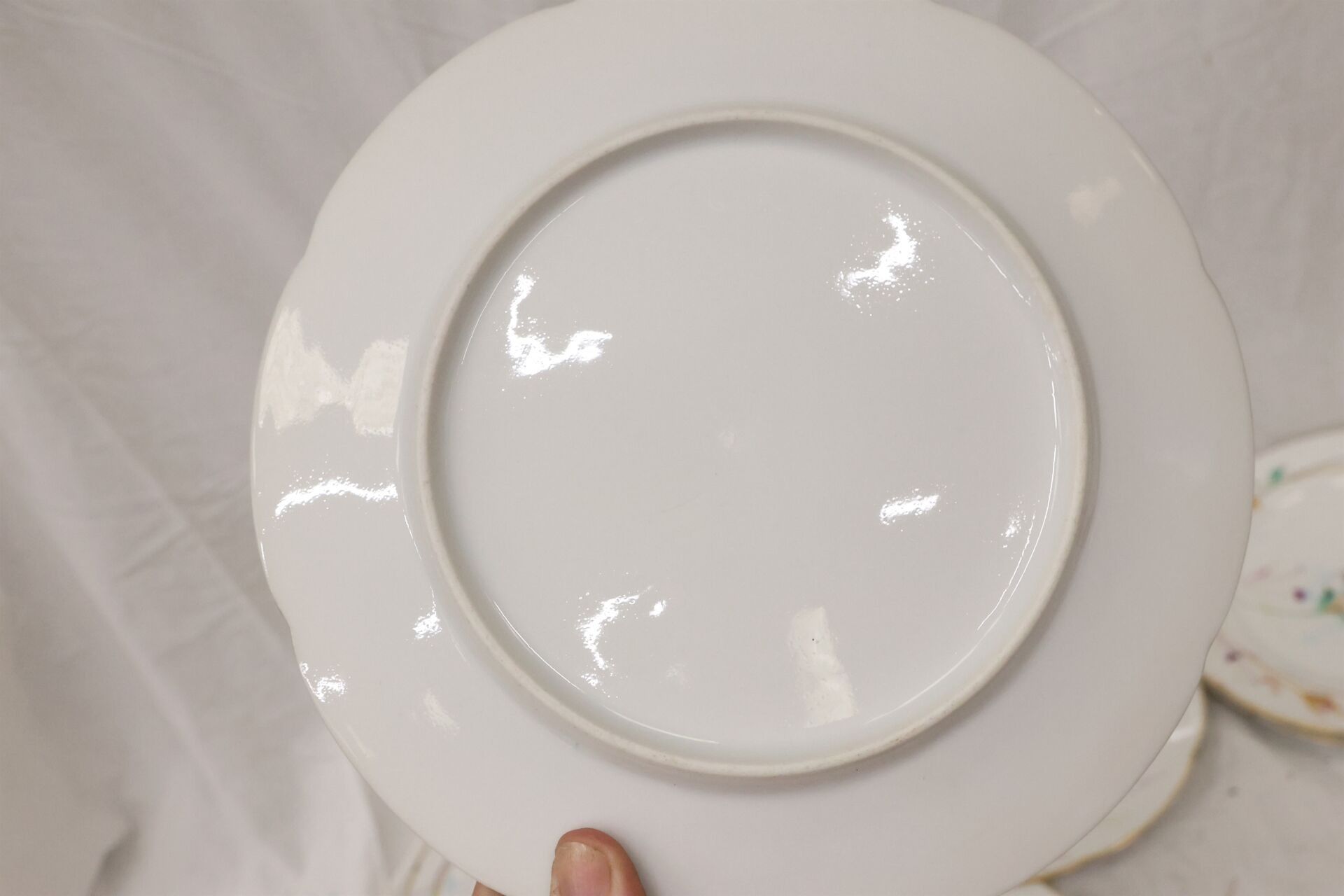 Set of thirteen polychrome porcelain plates decorated with flowers and gold edging. Diameter 21.5 cm