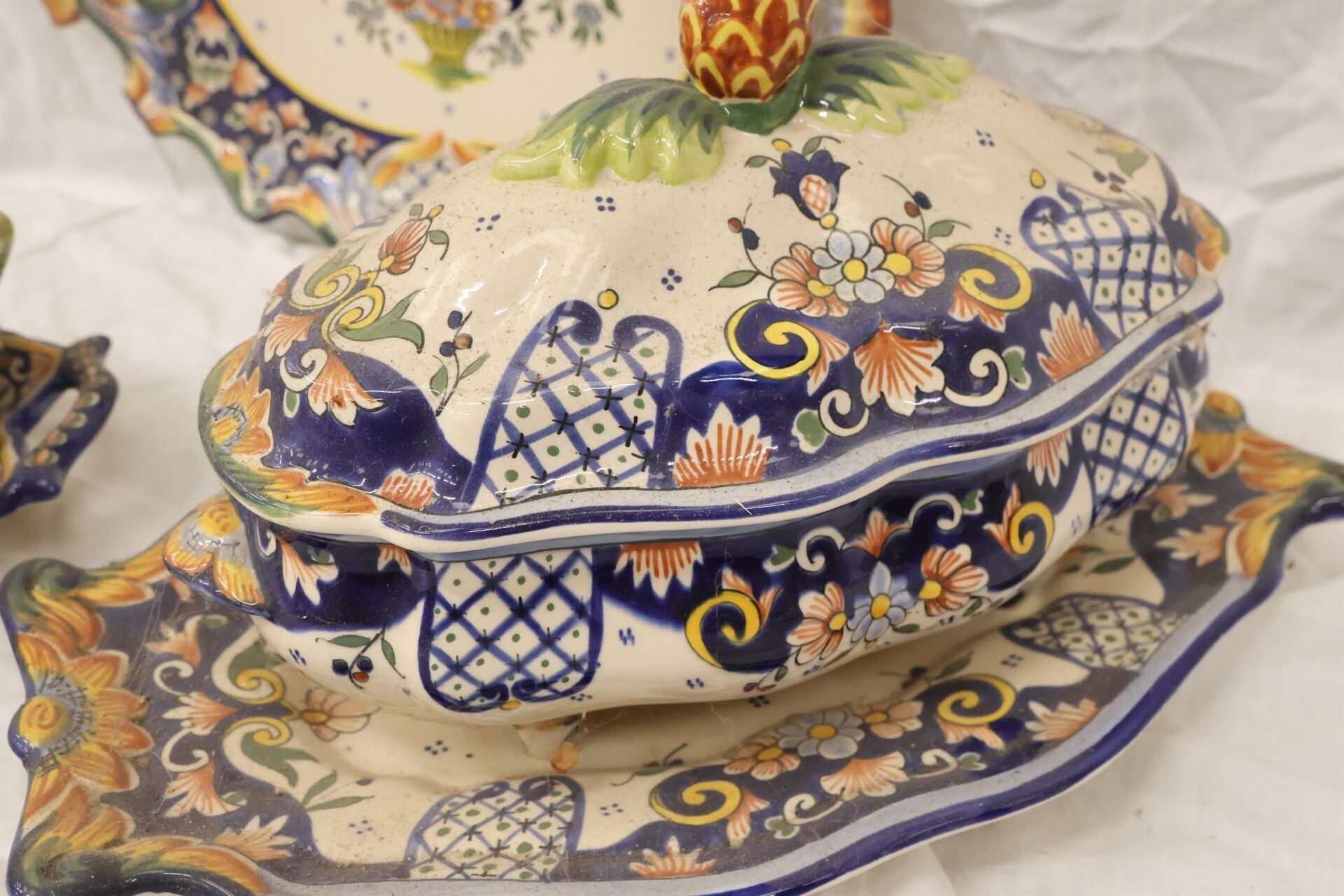 ROUEN Two tureens and their trays + 1 oval dish with handles…