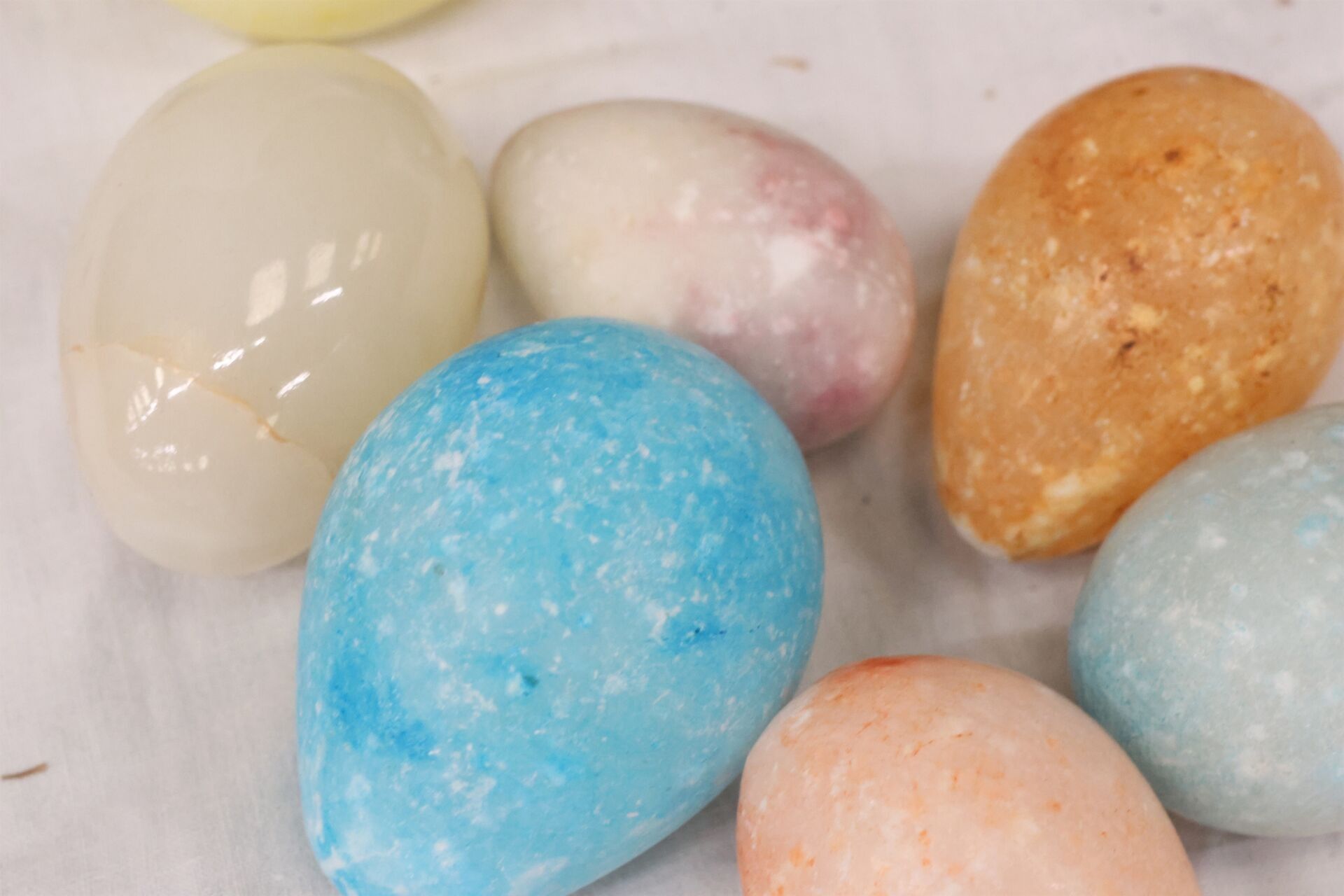 Set of hard stone eggs and adjoining Renaissance-style brozn…