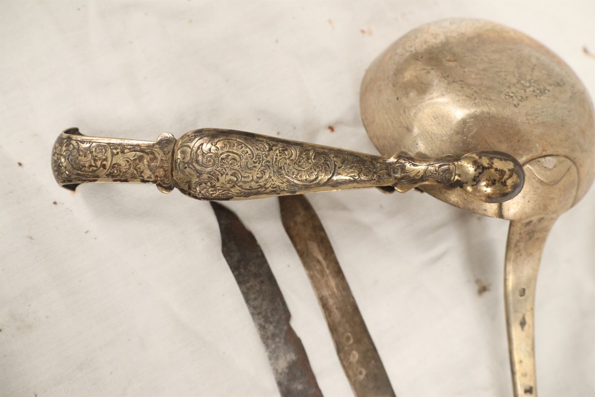 Silver ladle, sugar tongs and salt shovel weight: 269 grs + …