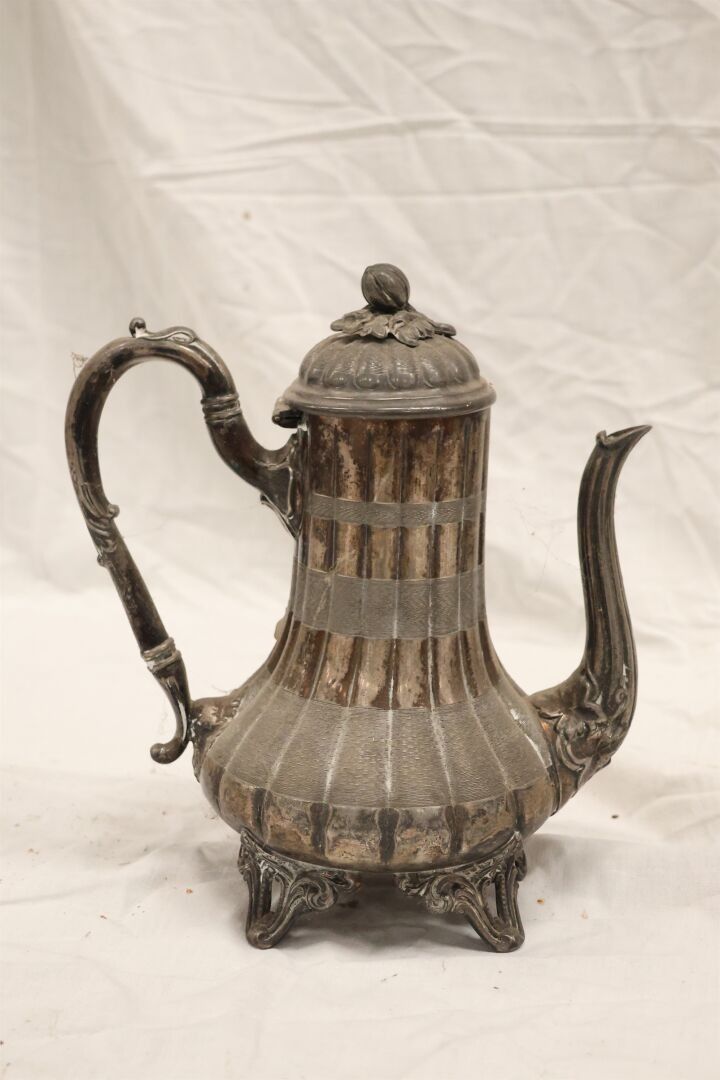 Sheffield Silver-plated coffee pot with ribbed and rocaille decoration 26 cm high