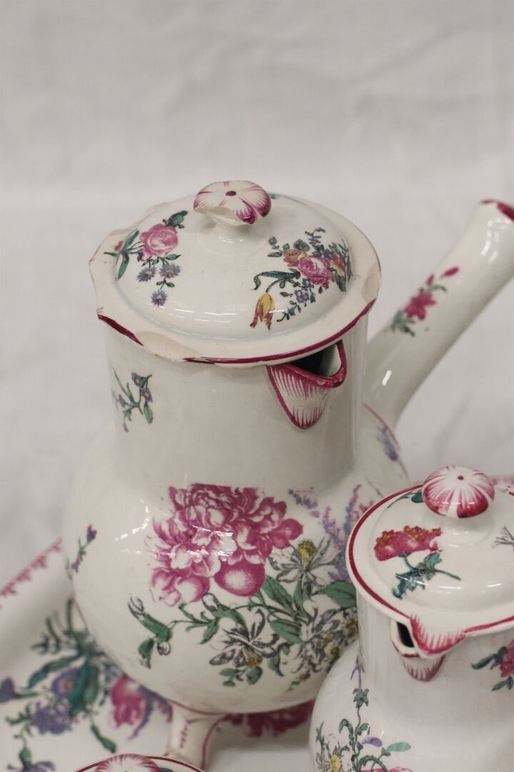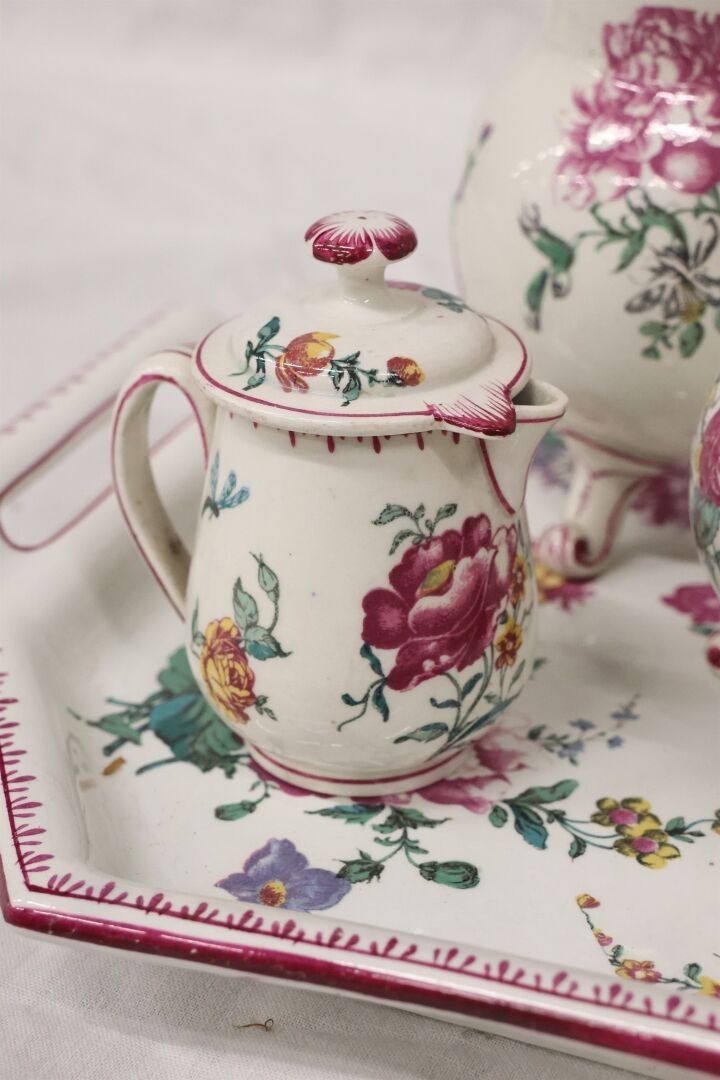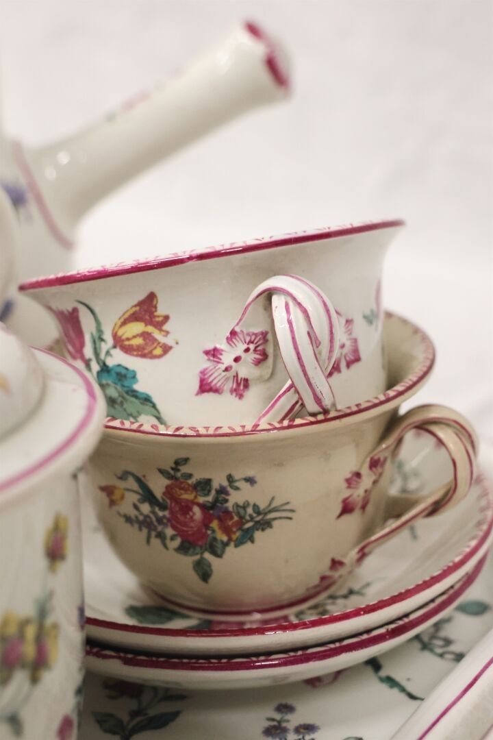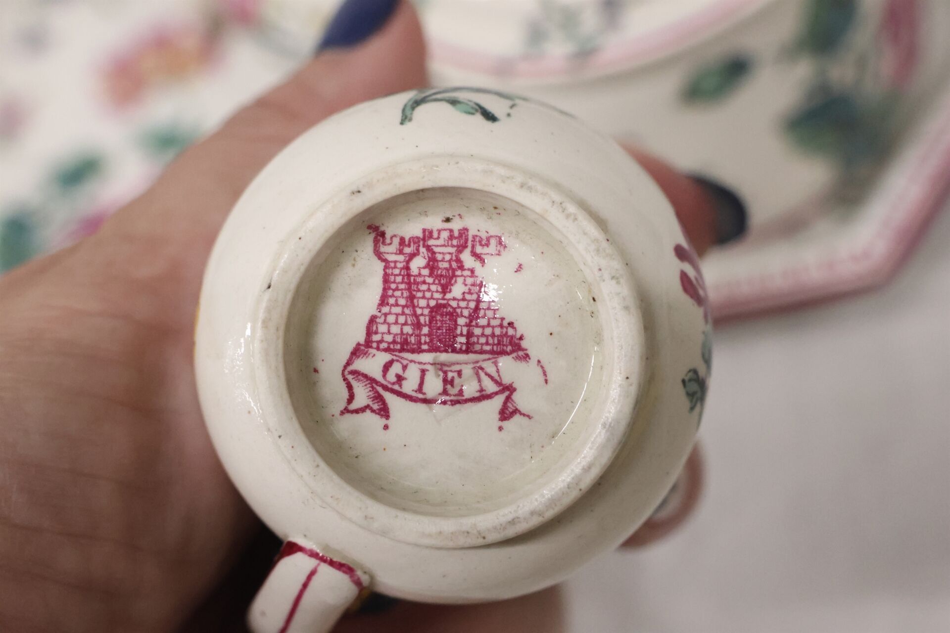 GIEN. Polychrome earthenware cabaret decorated with roses with its tray. Accidents