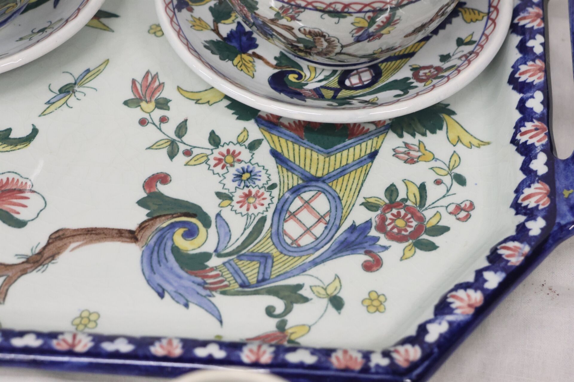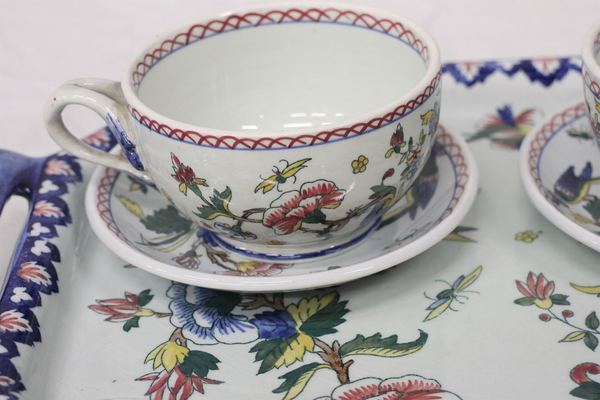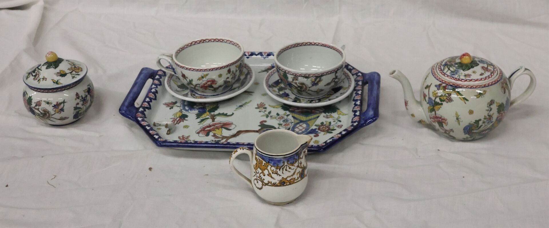 GIEN. Cabaret in polychrome earthenware with a slightly different decoration and a tray. Reassorts. Accidents