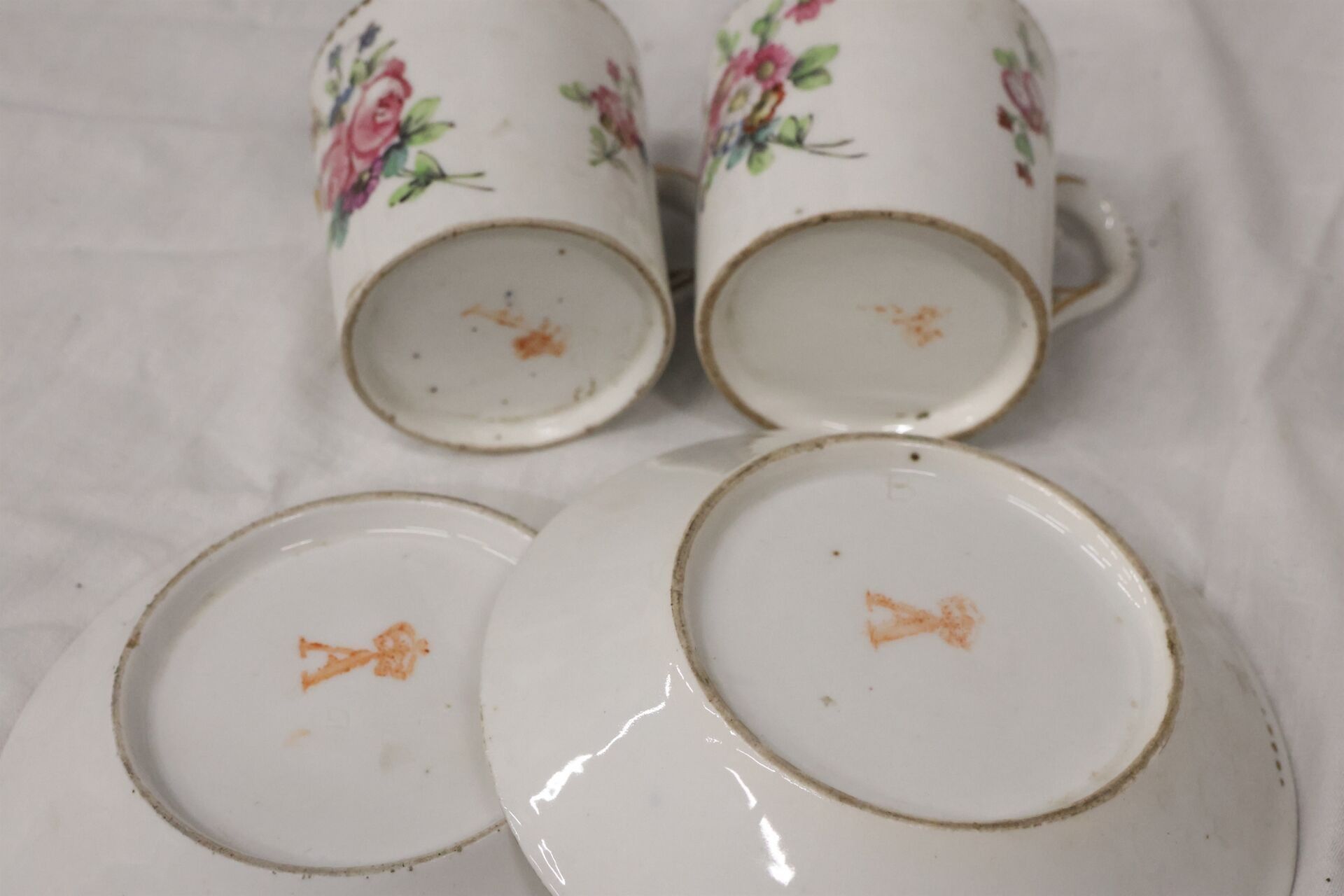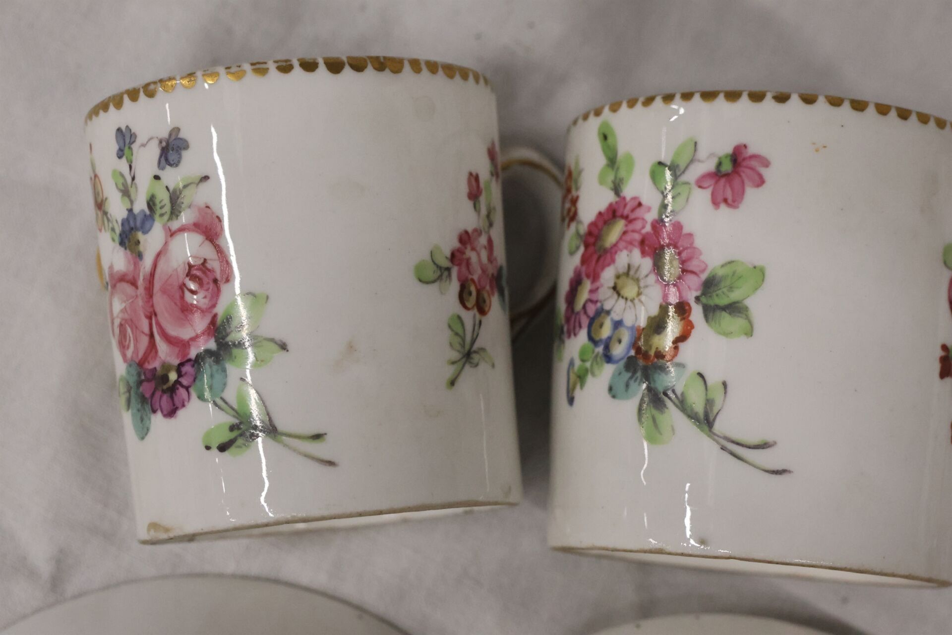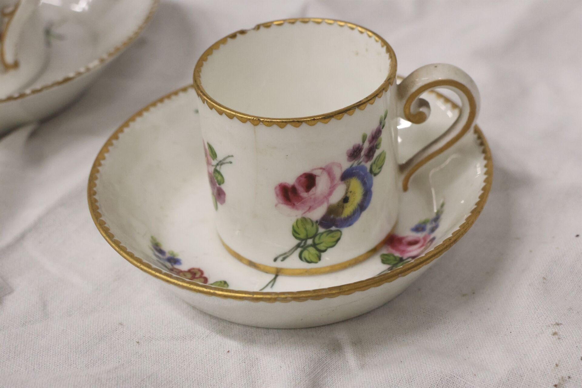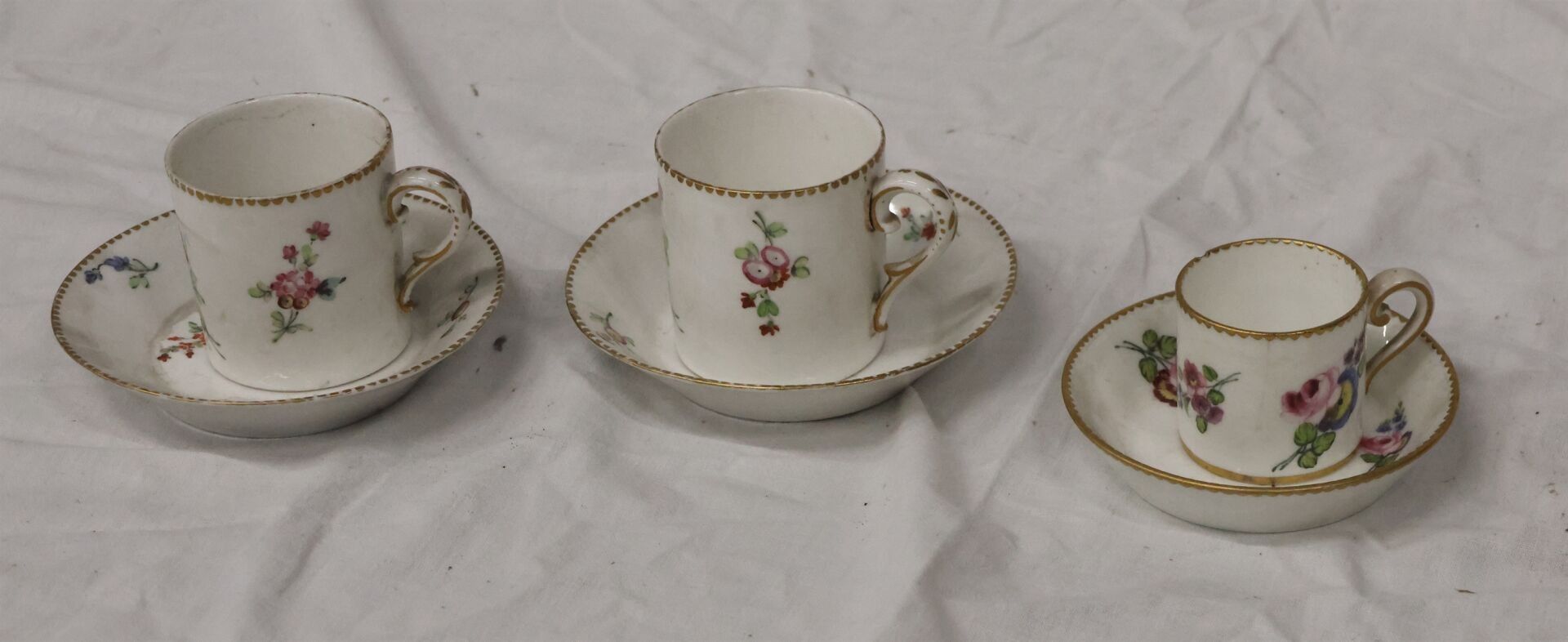 Three hard porcelain cups decorated with bouquets of flowers and gilded wolf's teeth. Two from the Manufacture de la Reine 18th century and one from Sèvres 18th century. Accidents
