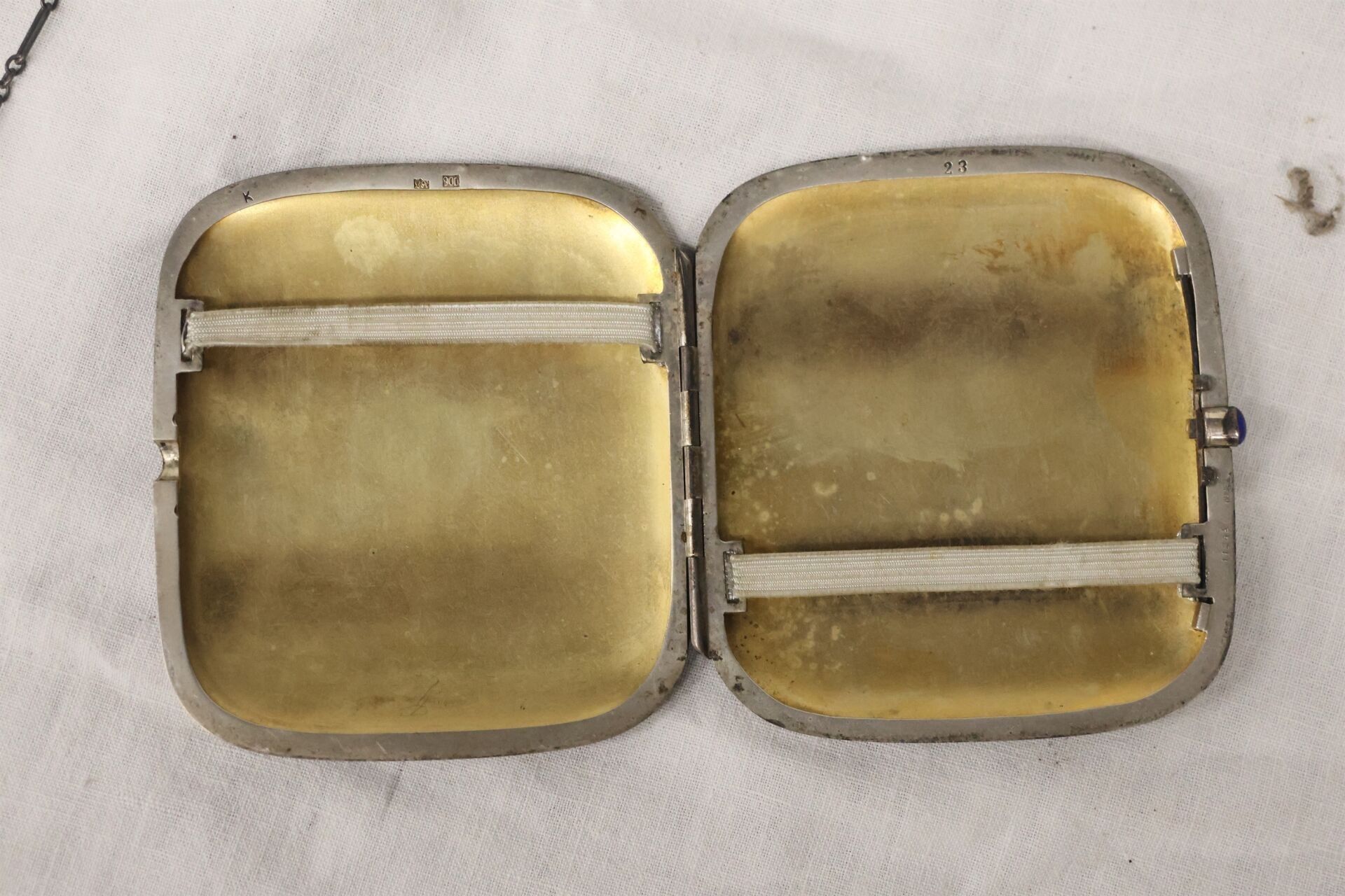 Cigarette case in silver 900/00 with blue stone cabochon 96.