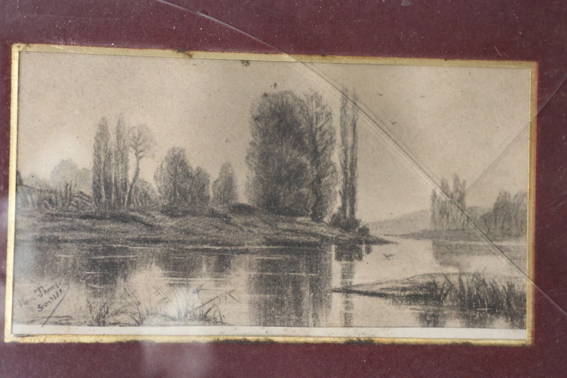 MARIE THERESE Drawing signed and dated 1888 lower left 9 x 17 cm view