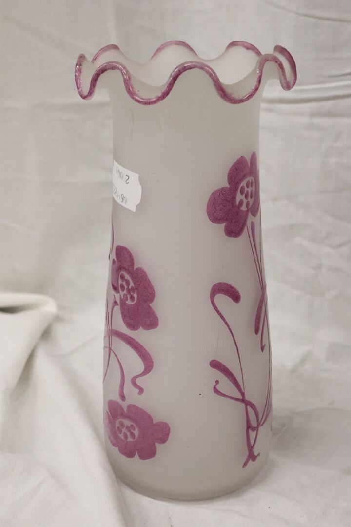 Lot including a glass vase decorated with pink flowers XX° -…
