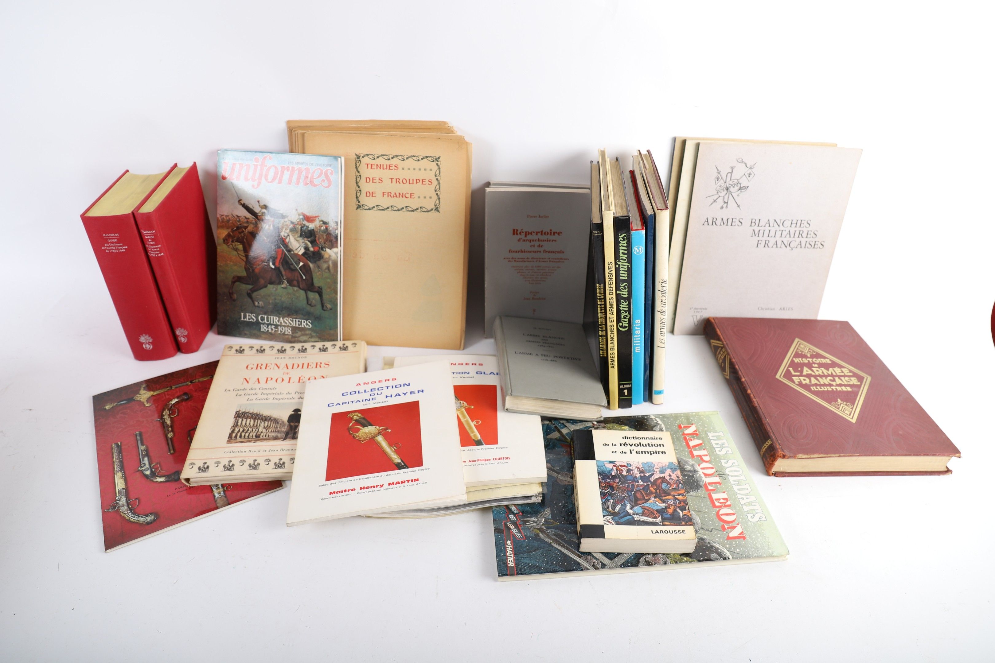 Strong set of books and catalogues. Including, among others, the Malibran, Grenadiers de Napoléon by Jean Brunon, Hayer and Glain sales catalogues, Tenues des Troupes de France (a dozen), Bottet, Jarlier, Aries, AMI and Campaigns magazines, etc. Good documentation