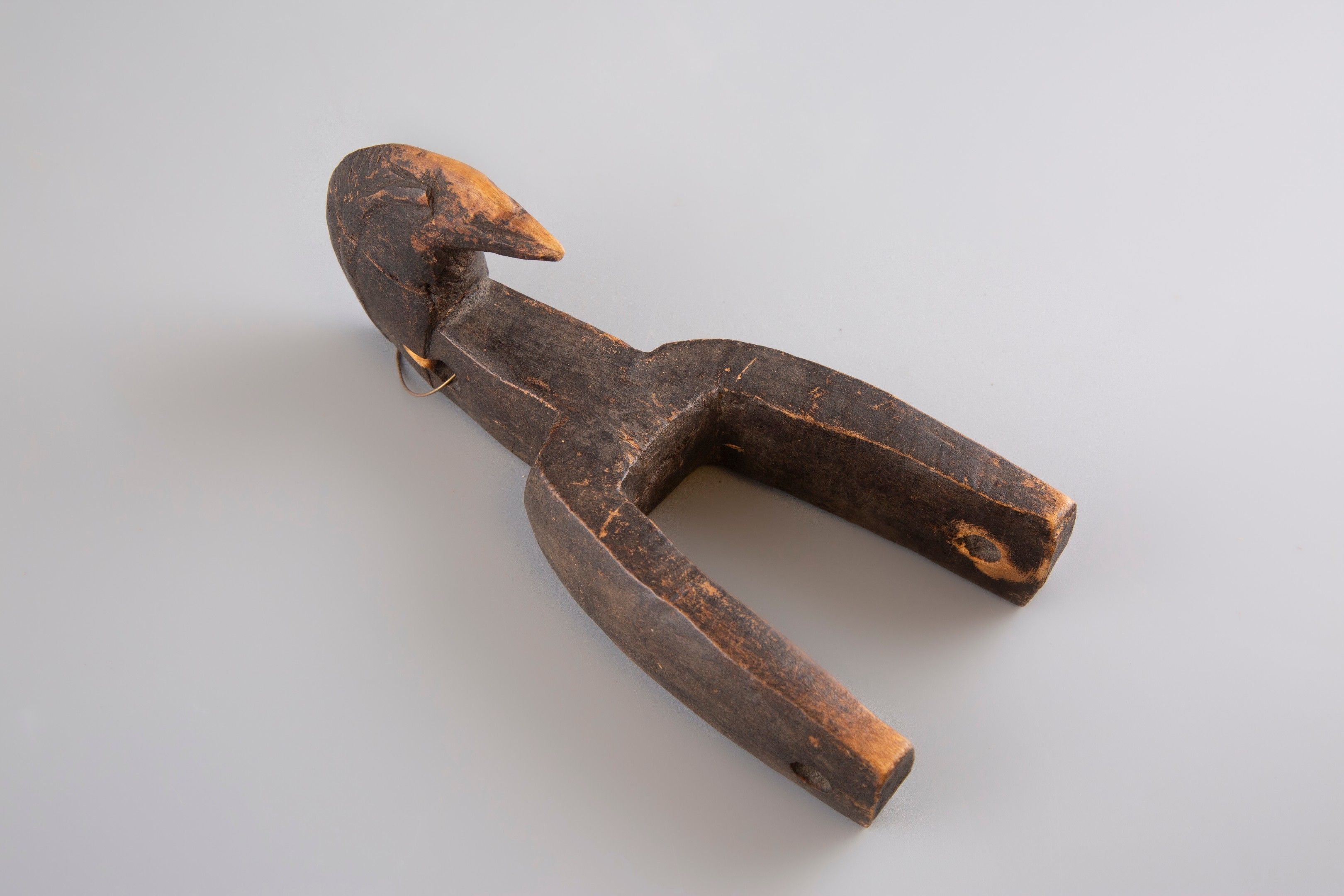 COTE D'IVOIRE - SENOUFO. Blackened wood loom pulley. Height 19cm.
