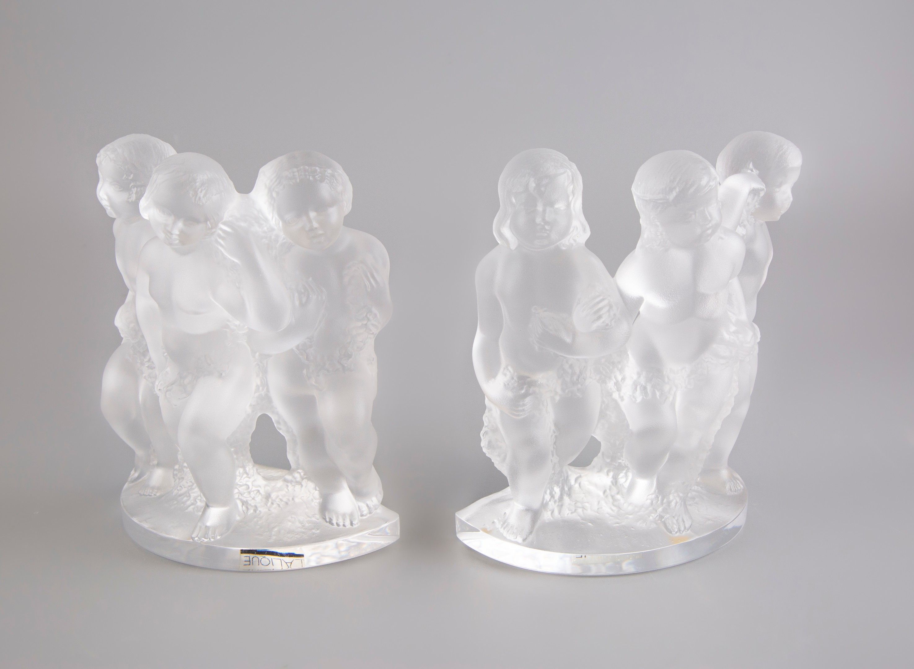 Premium LALIQUE France. Pair of white and satin-finish pressed mould…