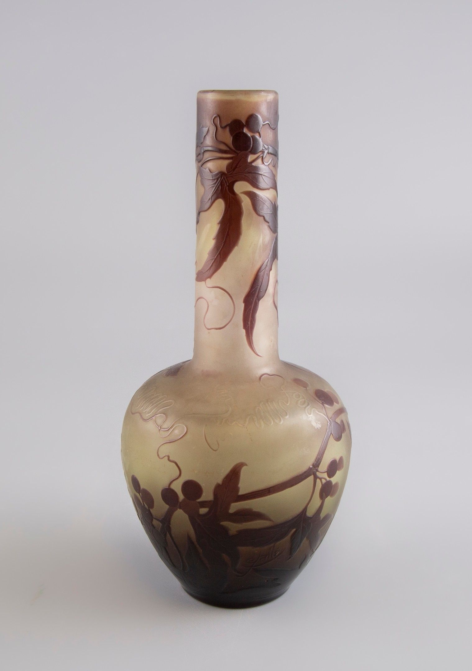 GALLE. Acid-etched glass vase with cylindrical neck decorate…