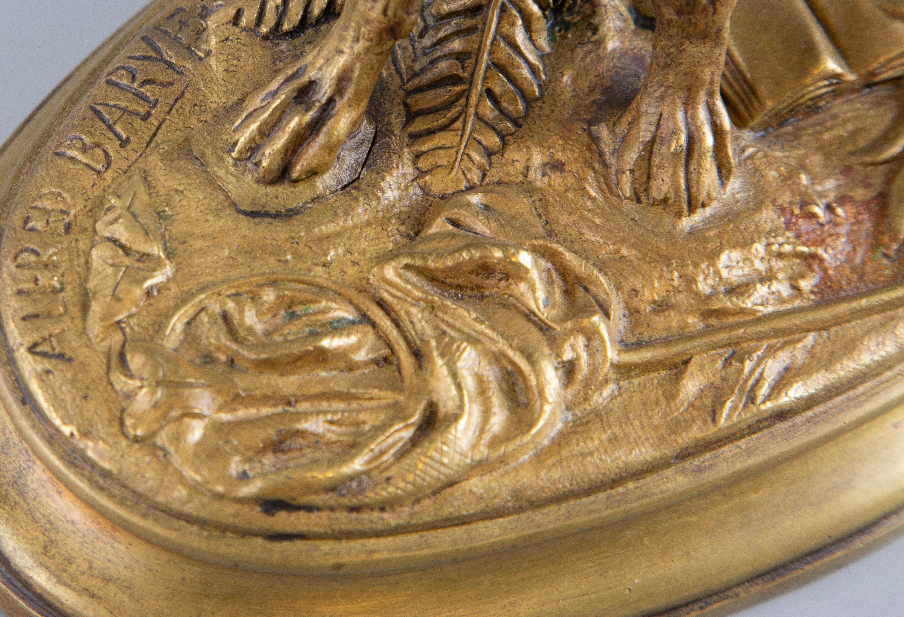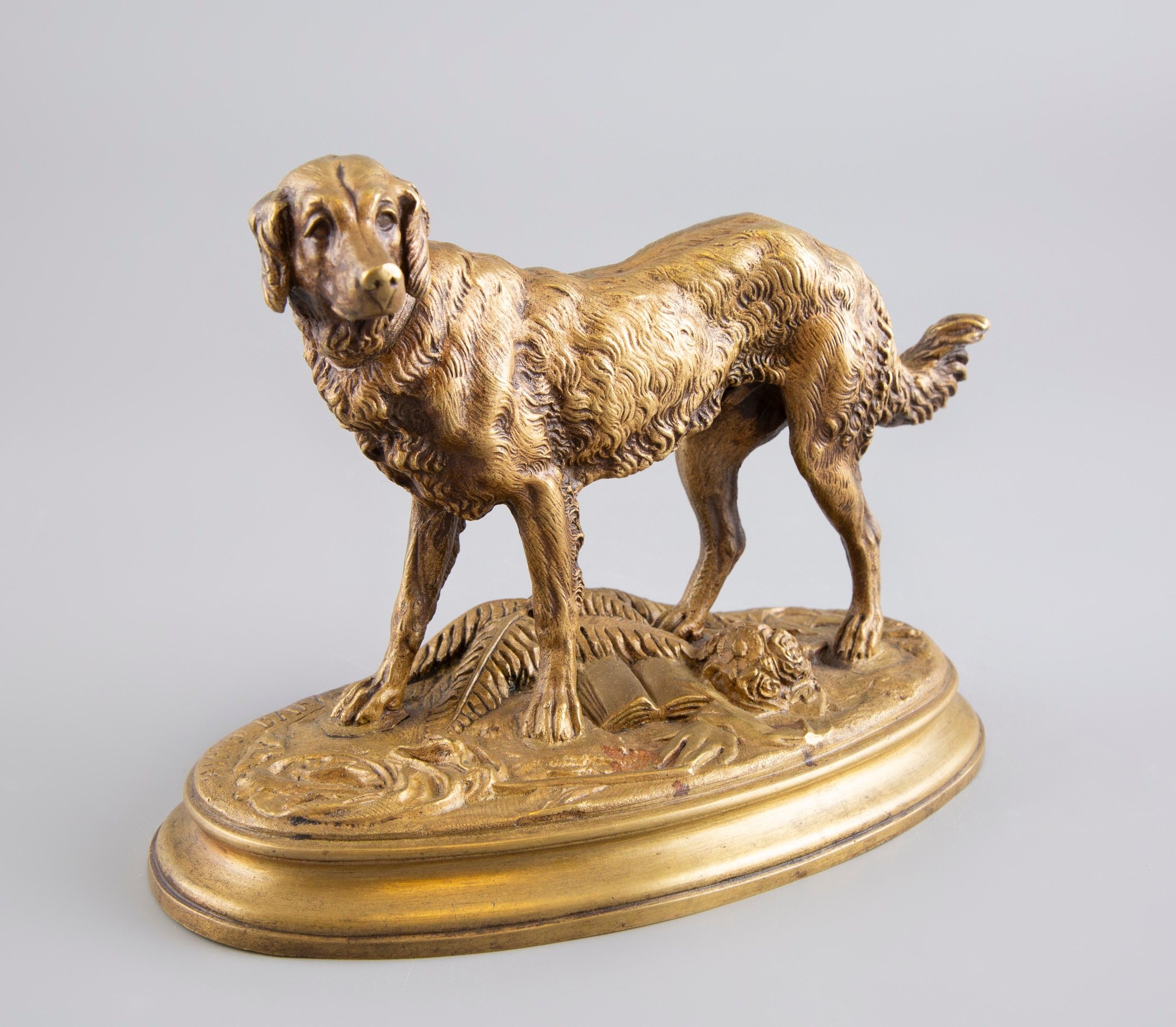 Alfred BARYE (1839-1882). "Dog at a standstill". Bronze proof with golden patina signed on the terrace. 17x22x12cm