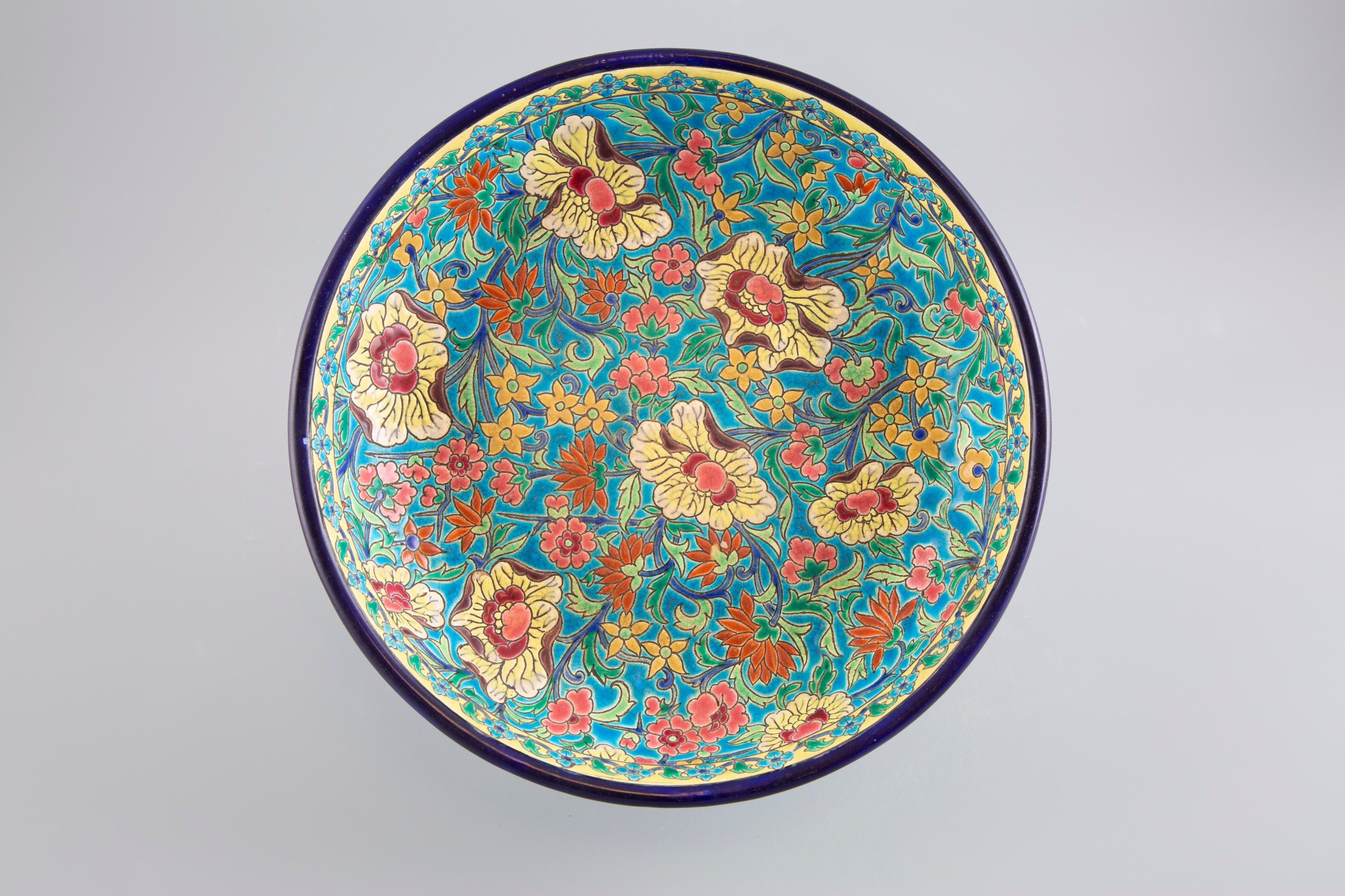 LONGWY. Earthenware bowl with polychrome enamel decoration.