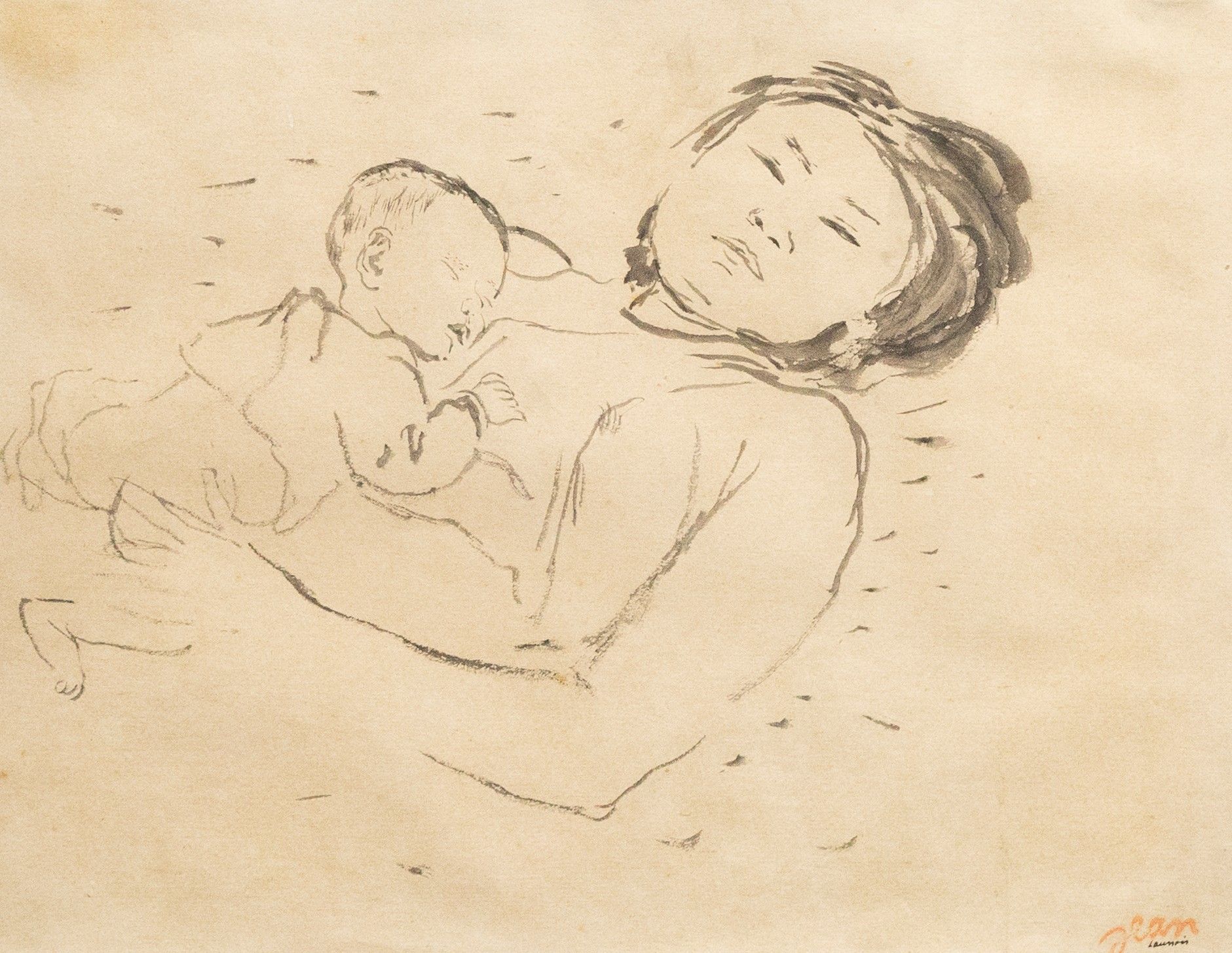 Jean LAUNOIS (1898-1942) "Maternité indochinoise". Ink on paper signed with the stamp lower right. 25x32cm. Expert : Cabinet Chanoit, Paris.