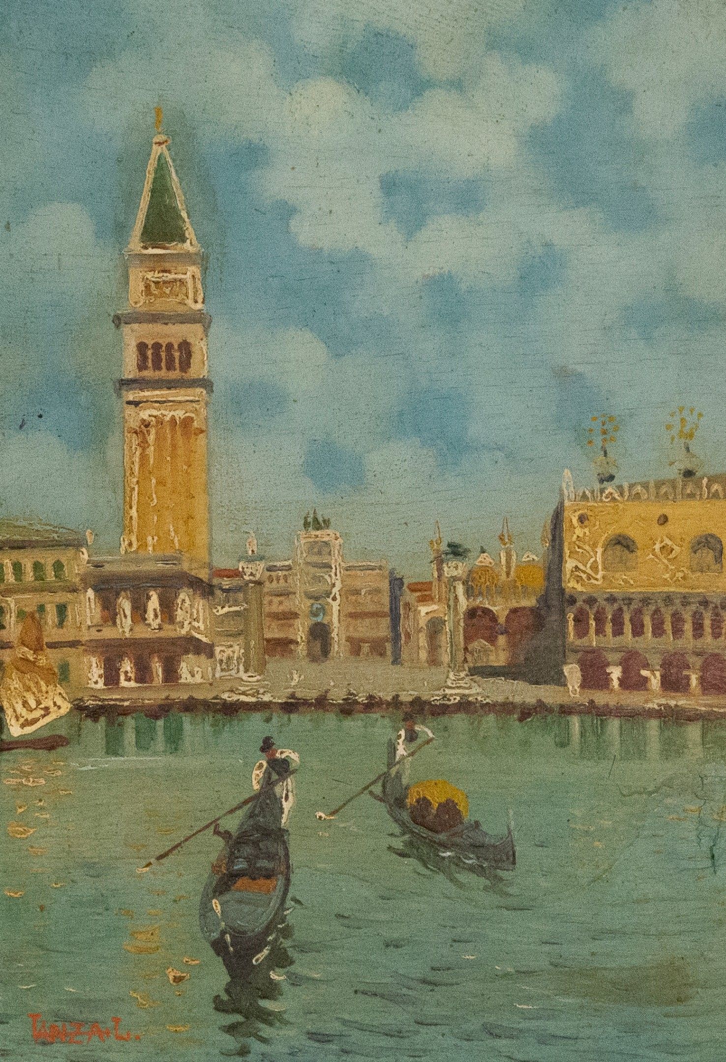 Luigi LANZA (1860-1913) "Saint Mark's Square, Venice". Oil on panel signed lower left, numbered on the back 466A. 28x20cm.
