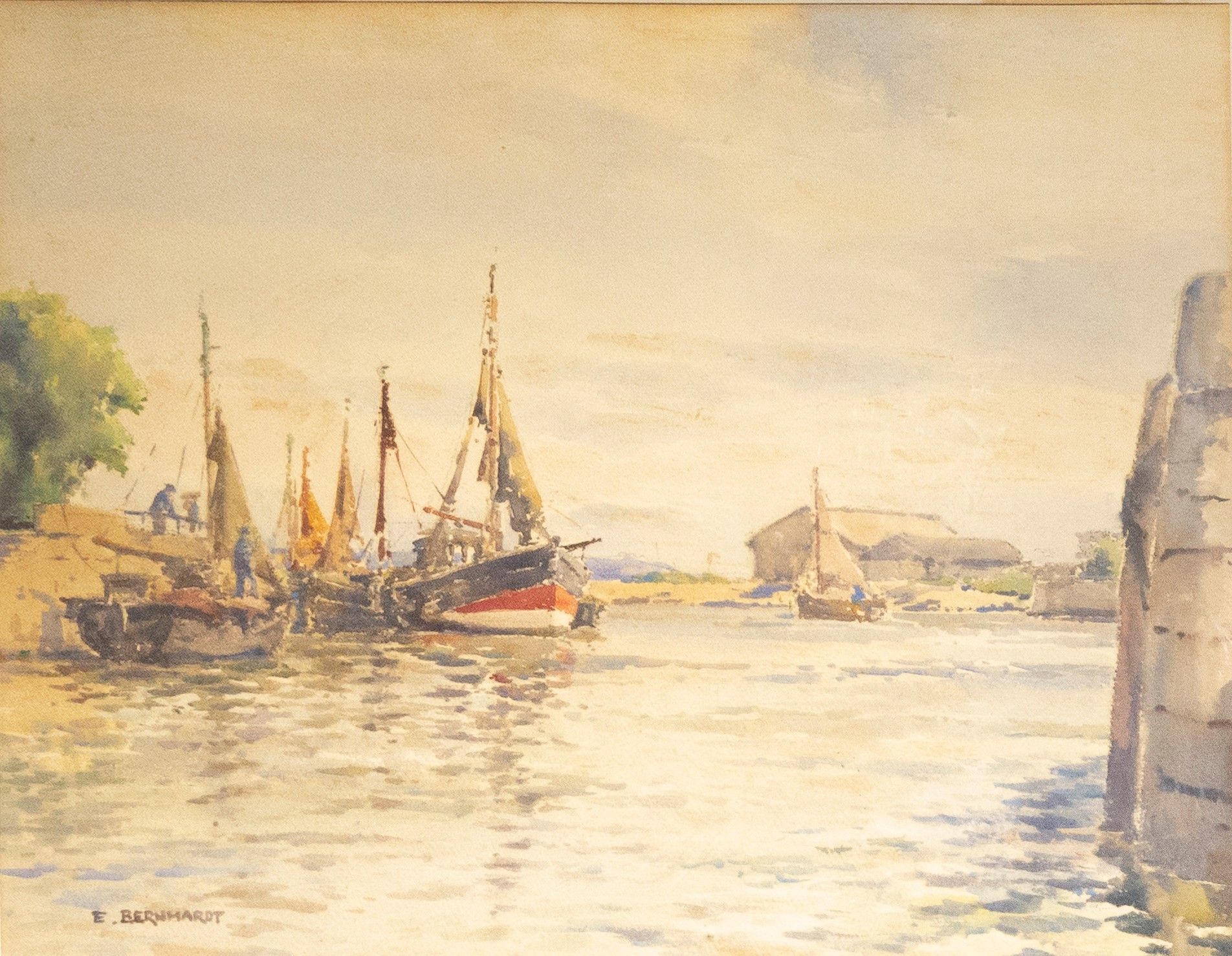 Eugène BERNHARDT (1898-1984). "Port of fishermen". Watercolour signed lower left. 46x60cm.