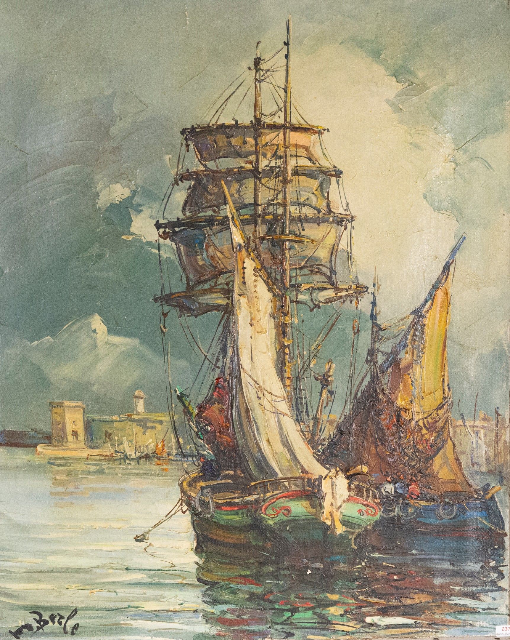 Maurice BARLE (1903 - 1961). "Sailboats in the outer harbour of Marseille". Oil on canvas signed lower left. 73x54cm