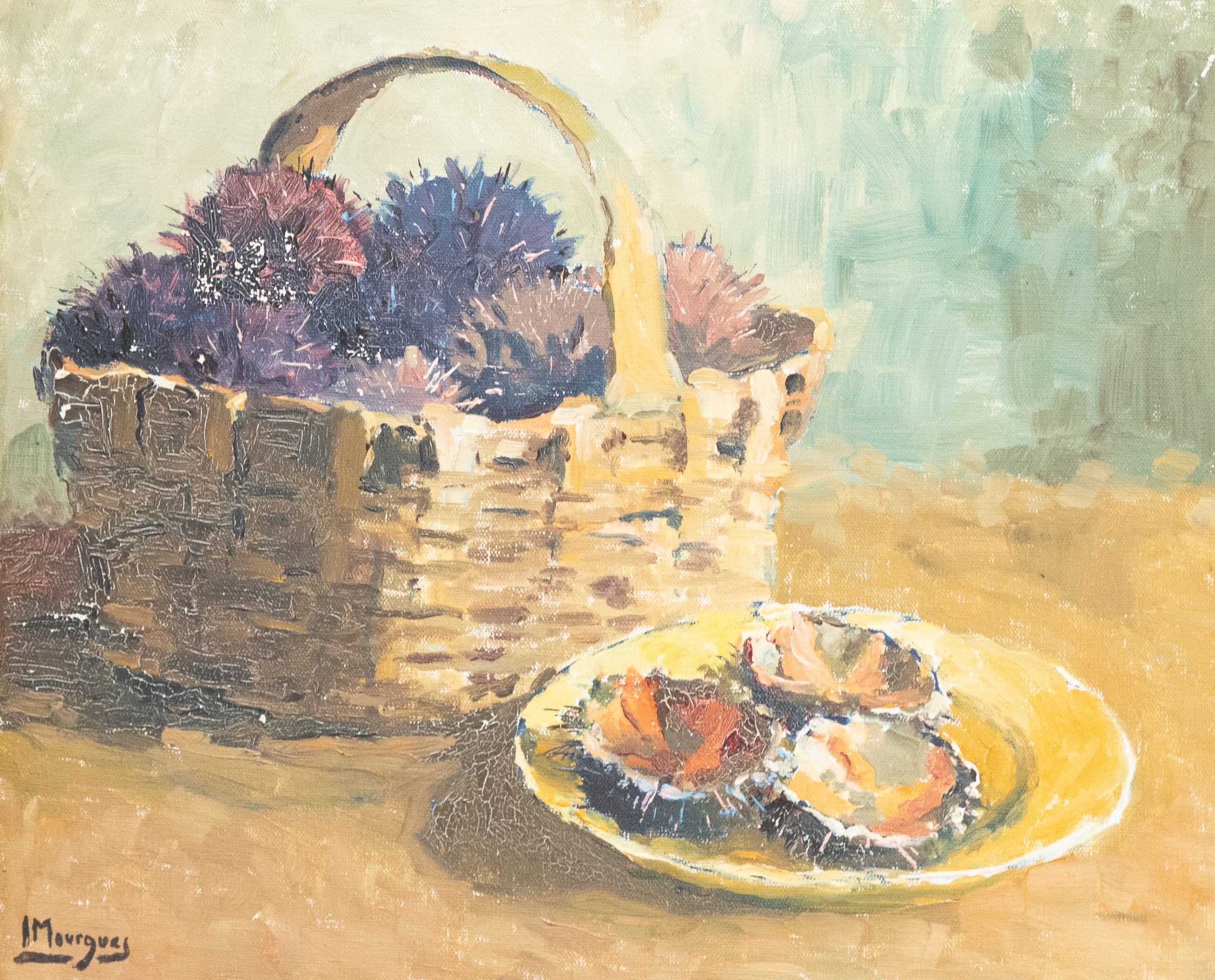 Louis André MOURGUES (1886-1962). "Sea Urchins". Oil on canvas, signed lower left. 38x46cm.
