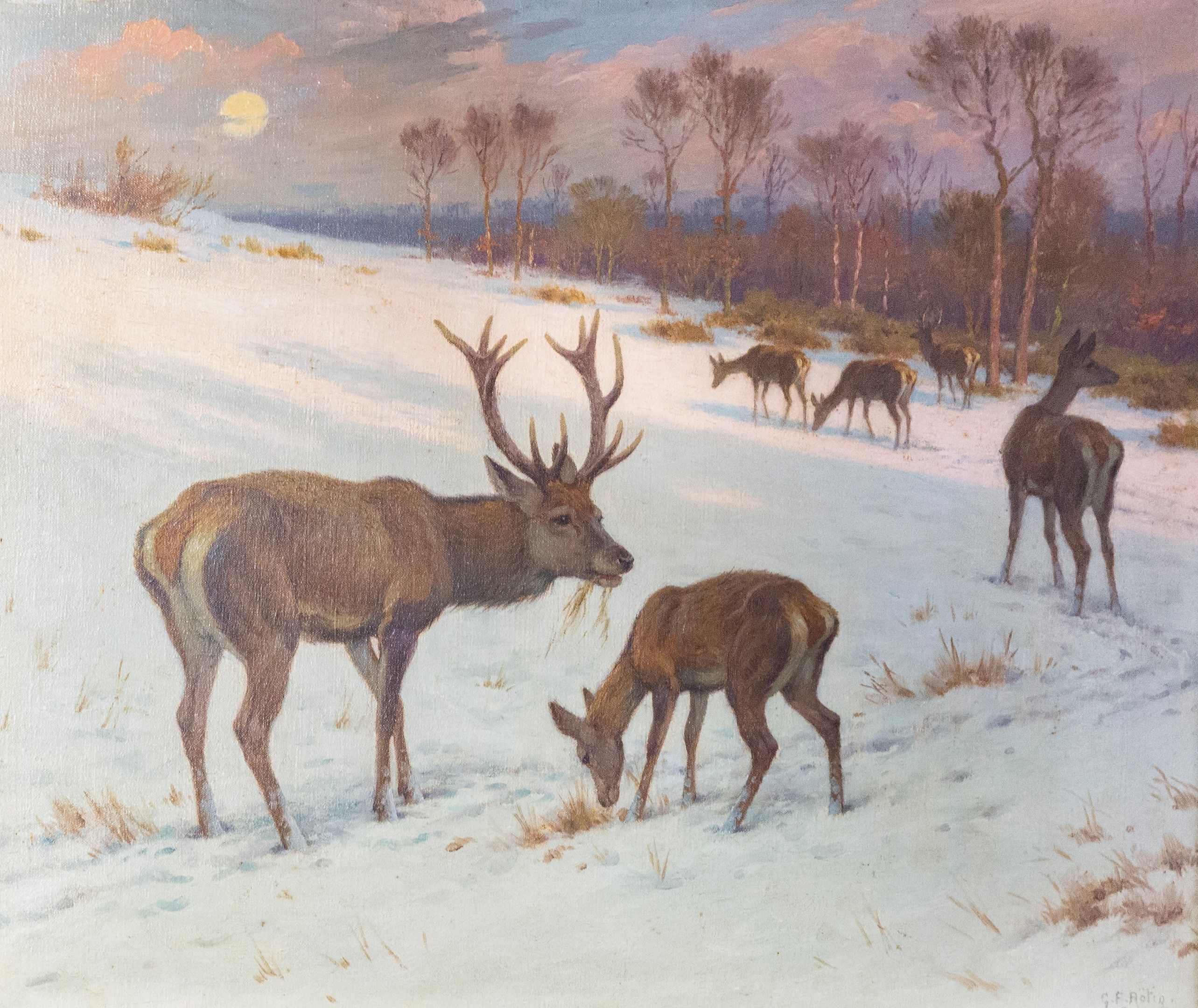 Georges FREDERIC ROTIG (1873 - 1931) "Stags and hinds". Oil on canvas signed and dated 1823 lower right. 55X65 cm.