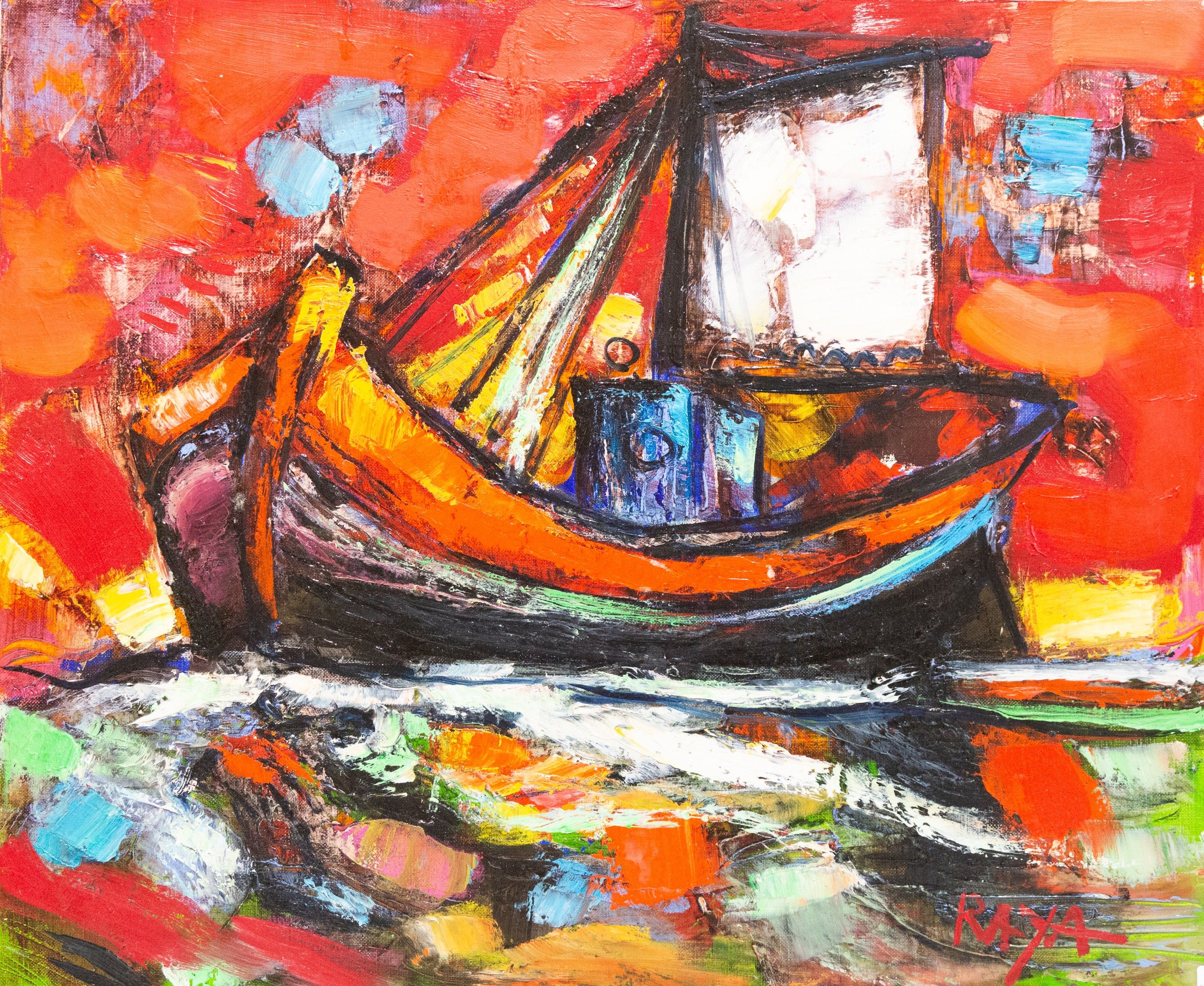 Alain RAYA-SORKINE (1936-2022). "The trawl of St Jean de Luz". Oil on canvas signed lower right, signed and titled on the back. 51x63cm.