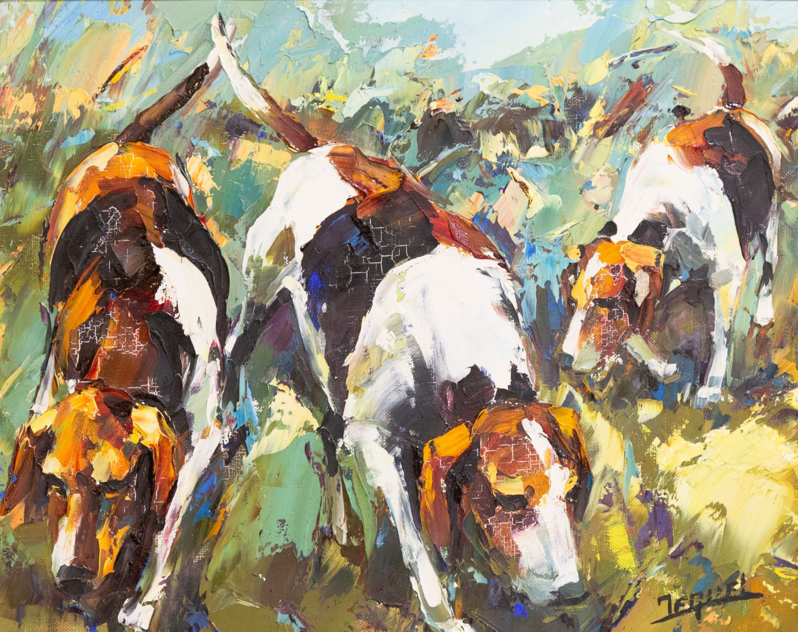 Christian JEQUEL (1935). "Hunting dogs on the lookout". Oil on canvas signed lower right. 33x41cm