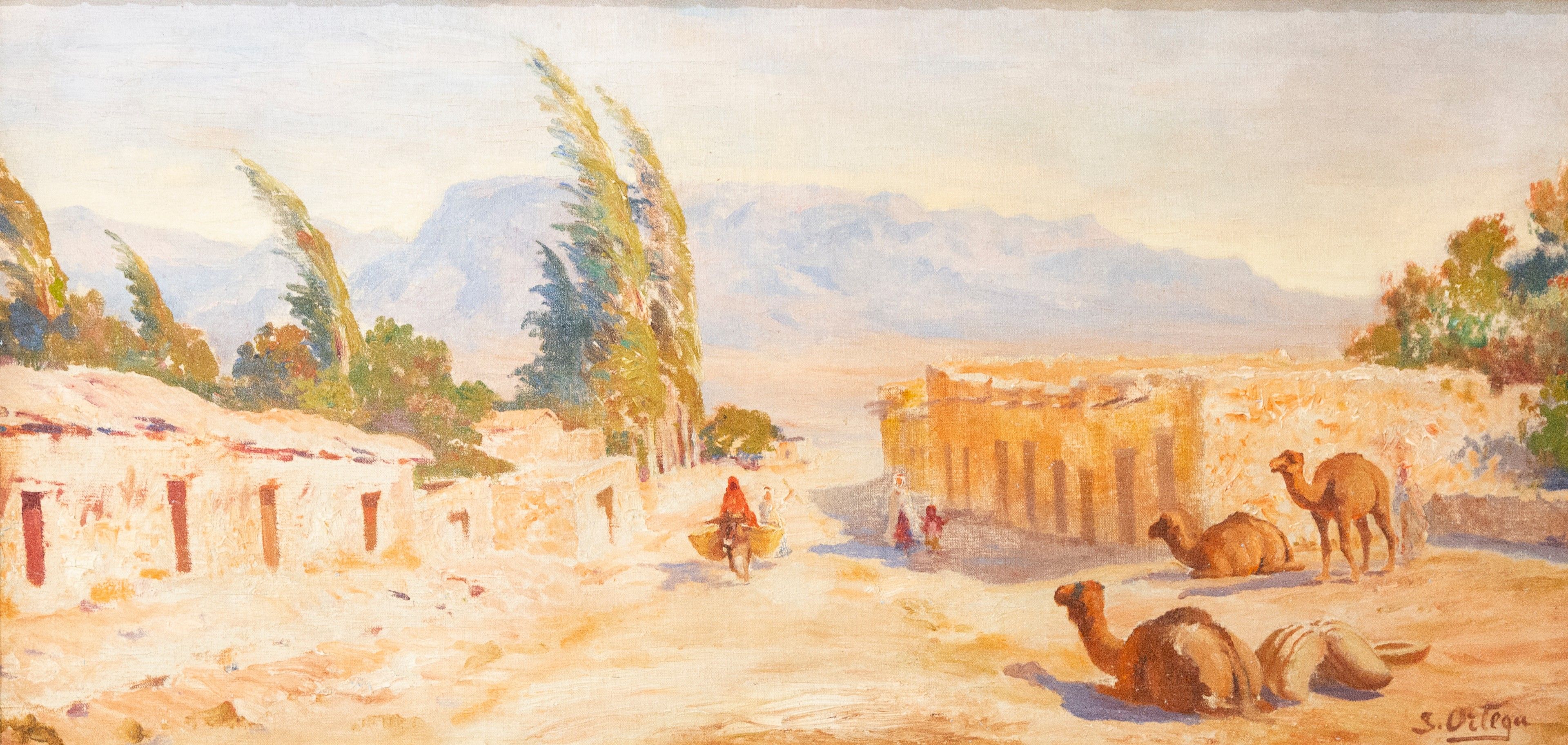 José ORTEGA (1877 - 1955). "El Kantara". Oil on canvas signed lower right. 42x87cm