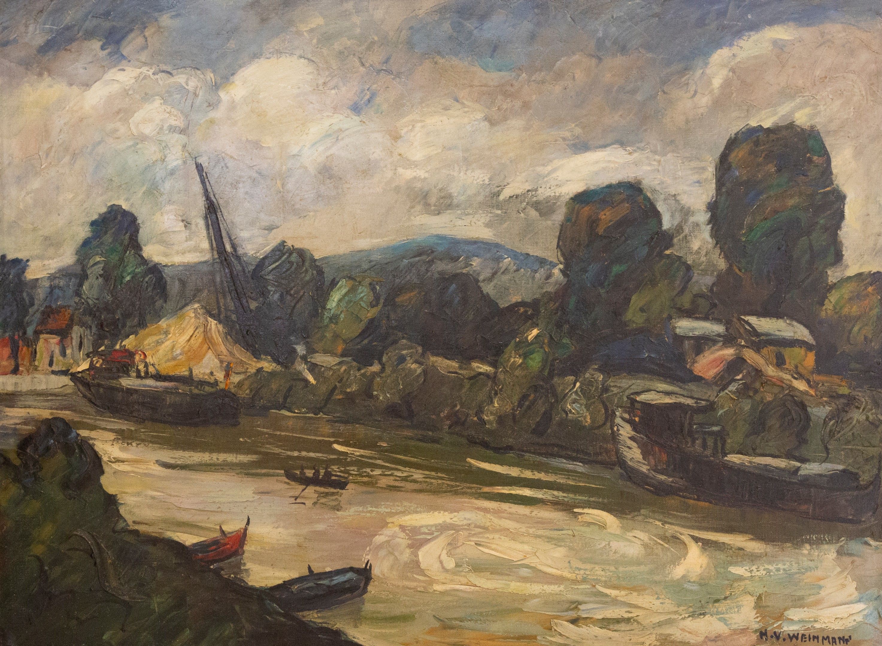 Nandor VAGH WEINMANN (1897-1978). "View of a river". Oil on canvas signed lower right.60,5x81,5cm.