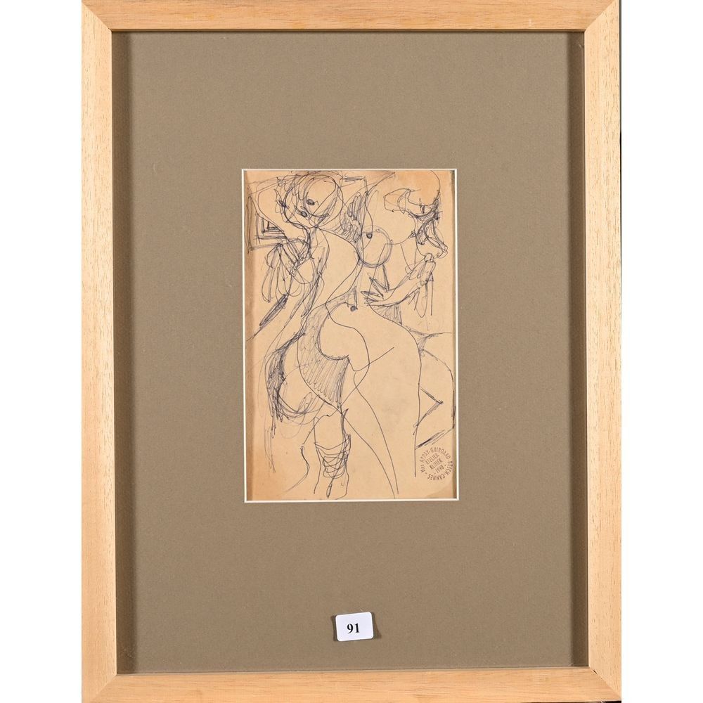 KLIMEK Ludovic (1912-1992). "Standing Nude". Ballpoint pen drawing signed with the studio stamp. H.20 L.13.