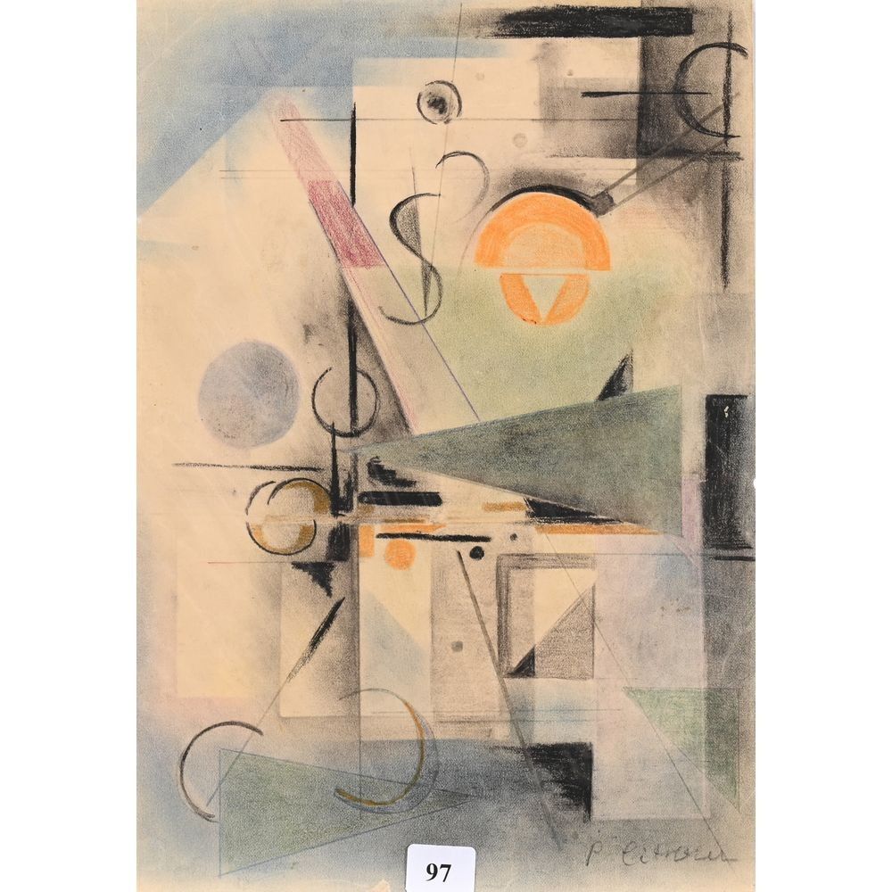 CITROËN Paul (1896-1983). "Abstract Composition". Graphite and coloured pencil drawing signed lower right. Circa 1960. H.29,7 L.20,5.