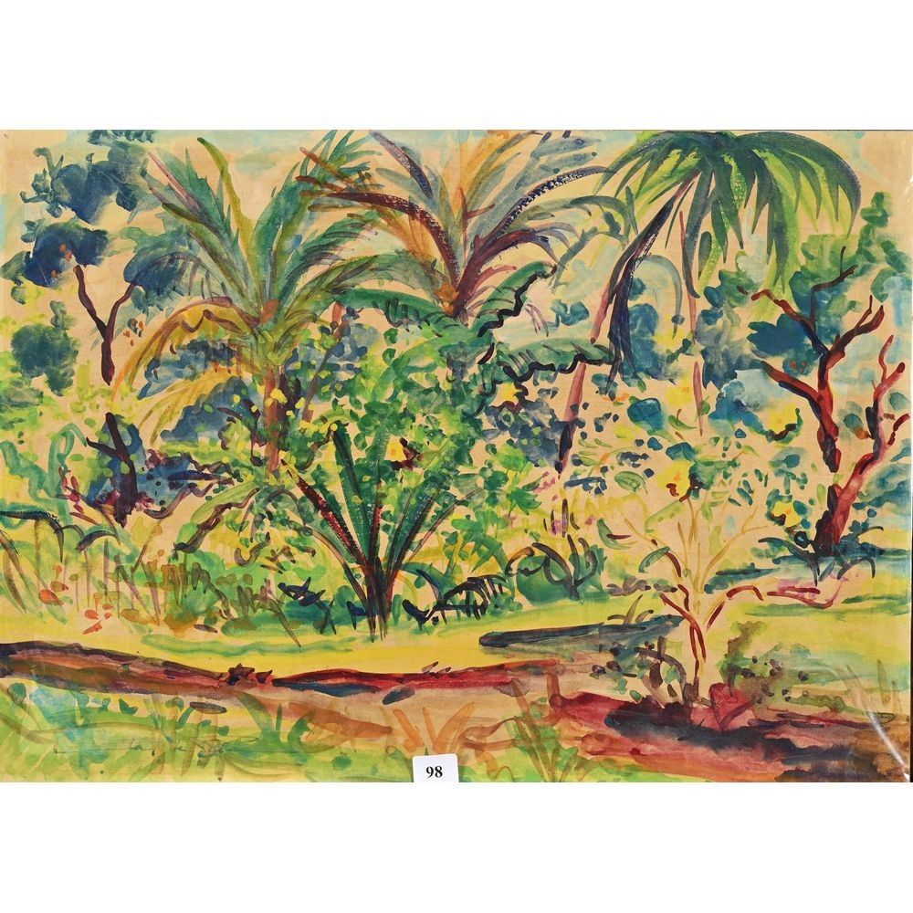 LE PELCH Jean (1921-1996). "Mediterranean Park". Varnished gouache signed lower left. H.33 L.46.