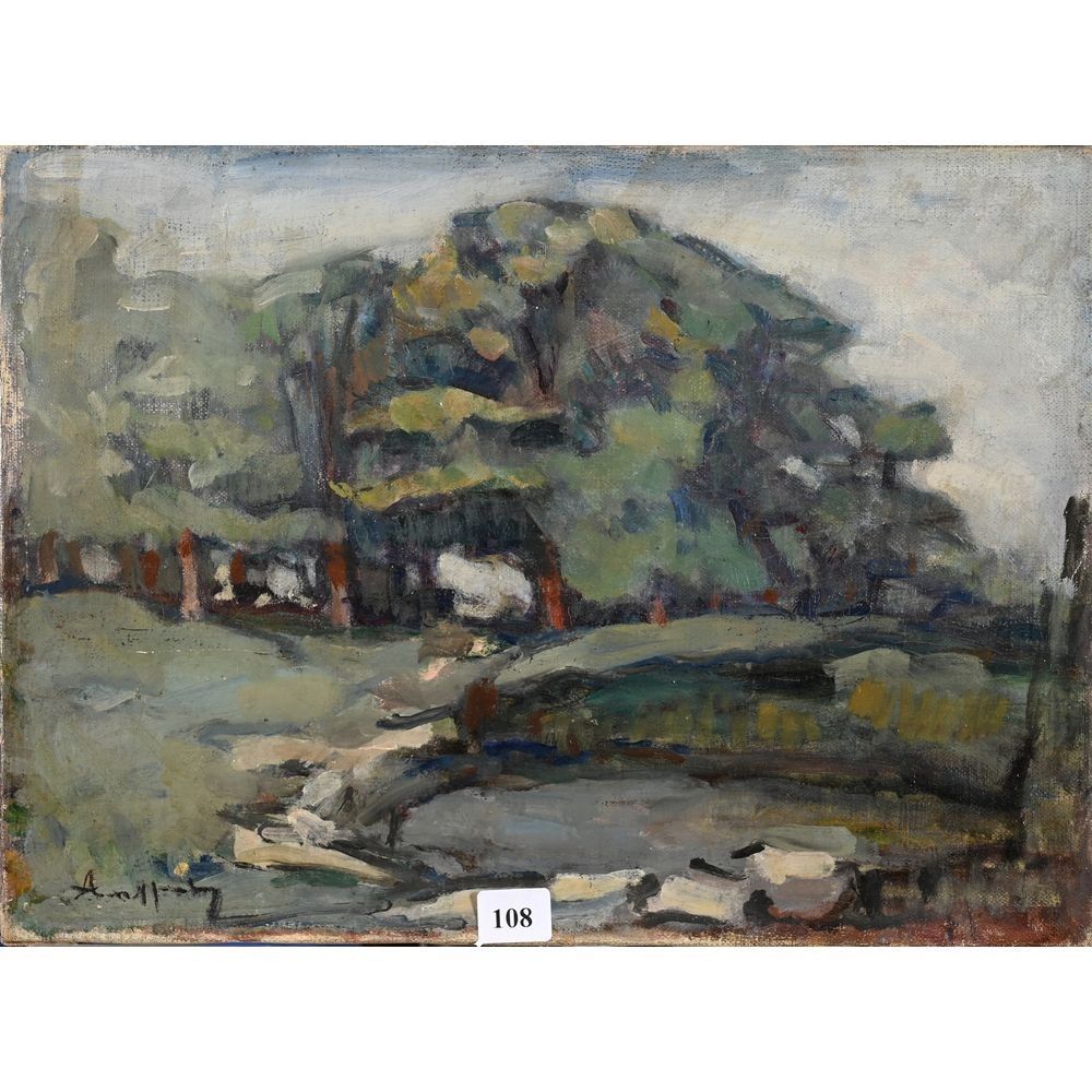 ANSPAH. ( ?). "Landscape". Oil on canvas signed lower left. H.24 L.33.