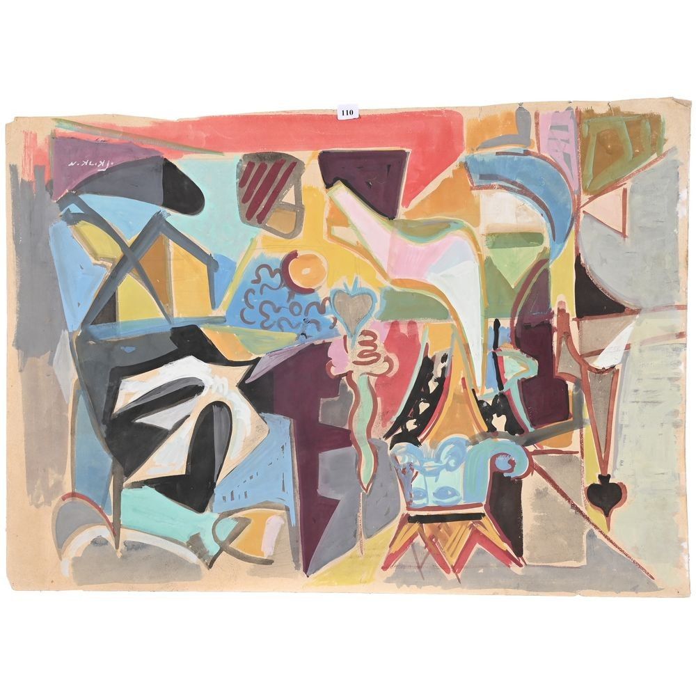 NORDECHAI Arieli (1909-1993). "The king of cards and birds". Unframed gouache (Preparatory study for the 1956 painting of the same name). H.51 L.70. (Documentation attached).