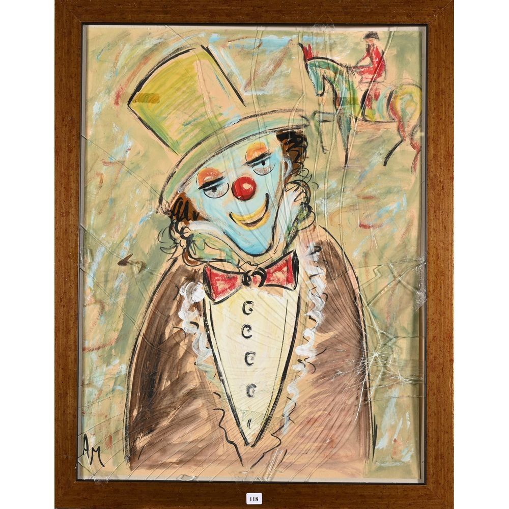 MEURICE André (20th) "The clown". The clown". Gouache on paper signed lower left. H.66 L.50.