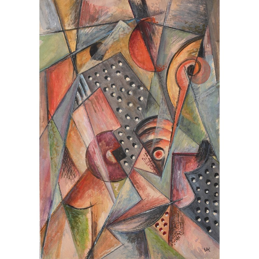 CHICHAGOVA Olga and Galina (1882-1958) and (1891-1966). (Students of Rodchenko). "Constructivist composition". Watercolour, gouache and charcoal strokes signed with monograms, one inverted with the date 20. H.30,5 L.21.