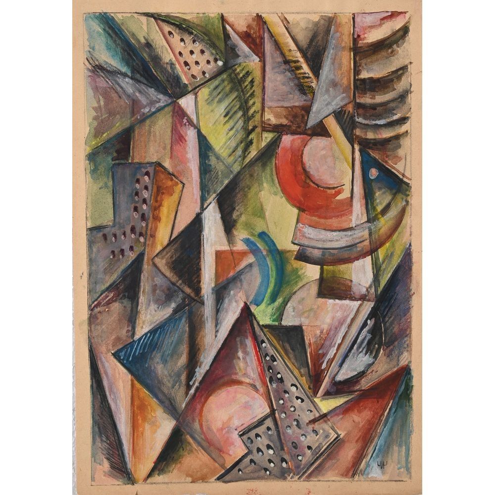 CHICHAGOVA Olga and Galina (1882-1958) and (1891-1966). (Students of Rodchenko). "Constructivist Composition". Watercolour and gouache signed with monograms, one of which in inverted Cyrillic initials, no date. Circa 1920. H.30 L.20,5.