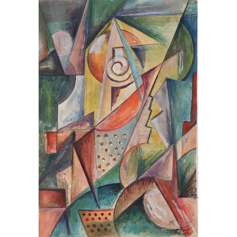 CHICHAGOVA Olga and Galina (1882-1958) and (1891-1966). (Students of Rodchenko). "Constructivist Composition". Watercolour and gouache signed with monograms, one in inverted Cyrillic initials with date 24. H.32 L.21,5.