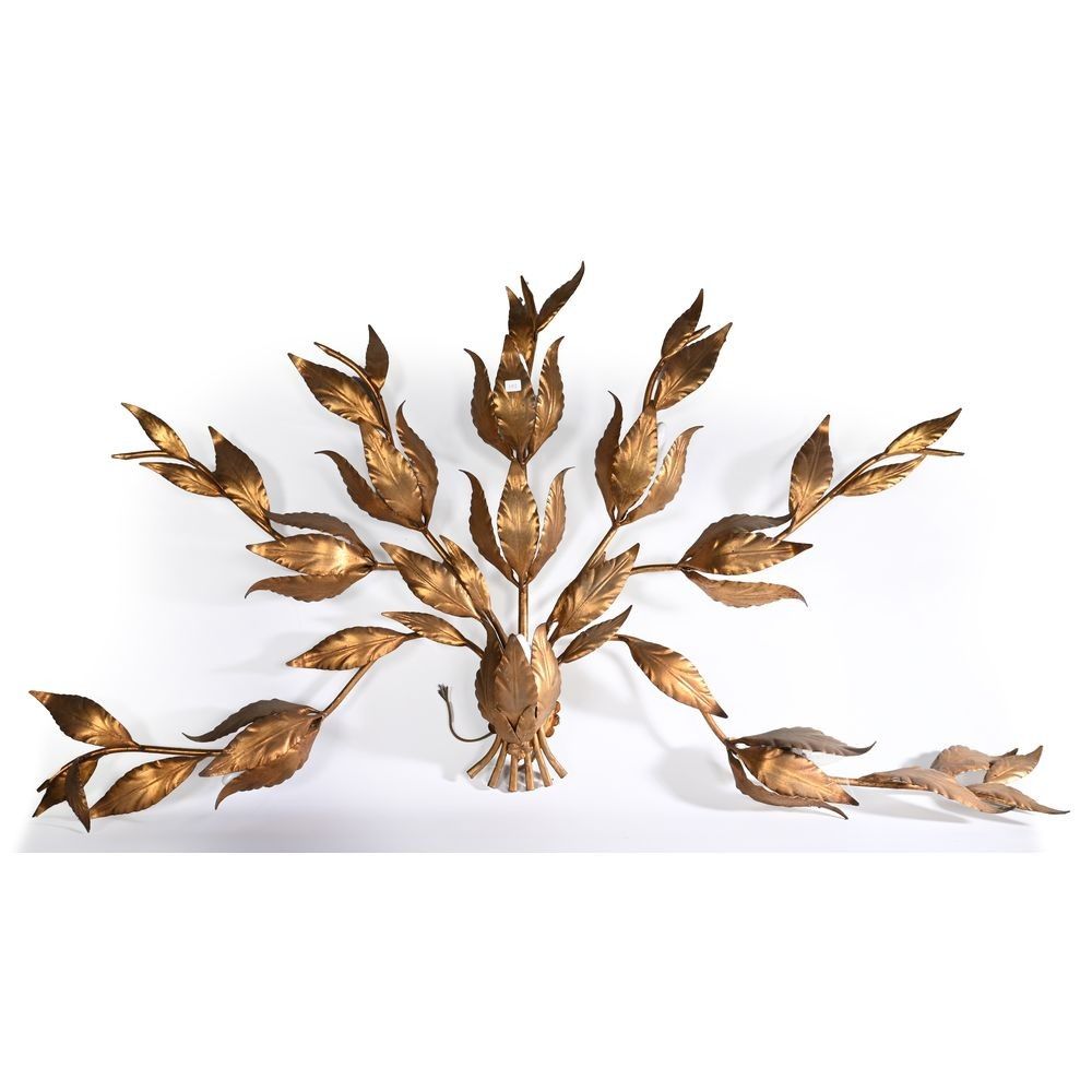 A LARGE brass and sheet metal wall light with foliage garlan…