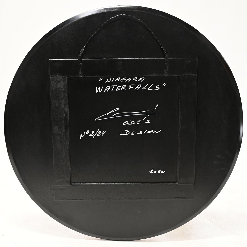 Olivier De Schrijver (?1958), Belgian school, Ode's Design Publisher Comme Chez Vous Art - 1 mirror "Niagara Waterfalls" in light blue glass, dia. +/- 100 cm, signed and numbered 2/24.