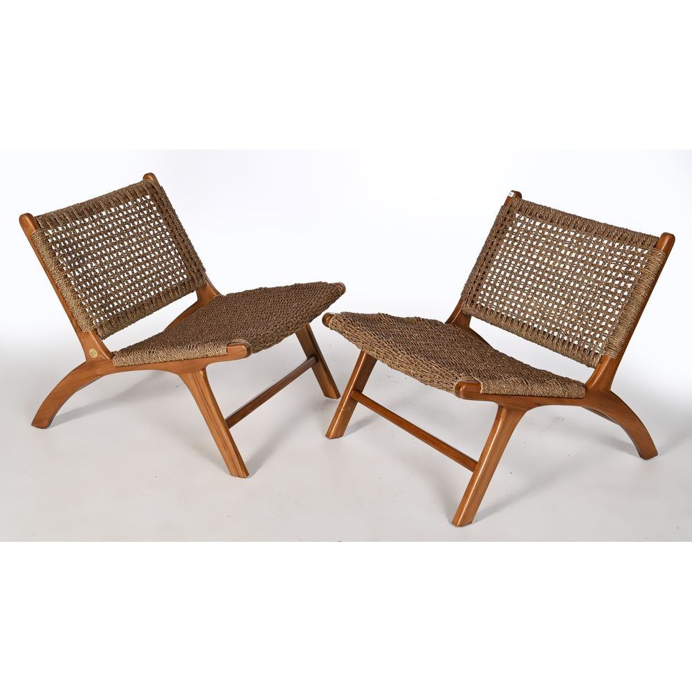 Olivier De Schrijver (?1958), Belgian school, Ode's Design Publisher Comme Chez Vous Art - 2 "Los Angeles" water hyacinth and teak armchairs, signed and numbered 180-181/240.