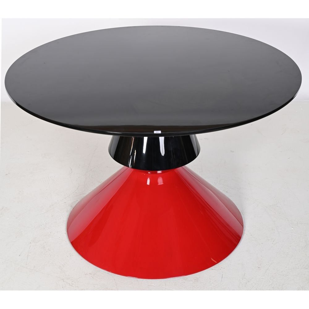 Olivier De Schrijver (?1958), Belgian school, Ode's Design Publisher Comme Chez Vous Art - 1 "Twist and Change" table in burgundy and black, can be screwed in and out to transform into a coffee table or high table, diameter 120 cm, signed and numbered 2/24