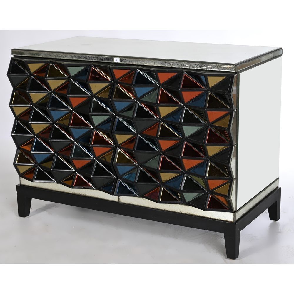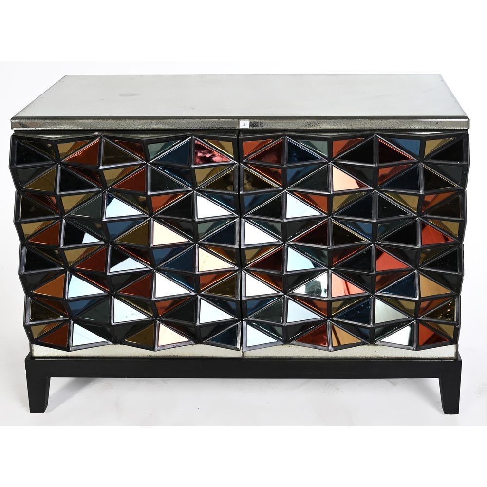 Olivier De Schrijver (?1958), Belgian school, Ode's Design Publisher Comme Chez Vous Art - 1 "La pièce manquante" two-door chest of drawers in Couleurs du Monde antique mirror, solid wood legs stained black, velvet finish inside and out, size +/- 52 x 76.50 x 108 cm, signed and numbered 4/8.