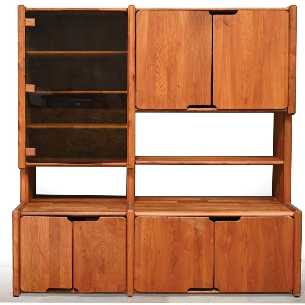 CHAPO Pierre. WOODEN VITRINE STORAGE CABINET. It opens with 4 doors in the lower section, a glazed section in the upper left section, a shelf and 2 doors in the right section. W.173 H.182 D.51.