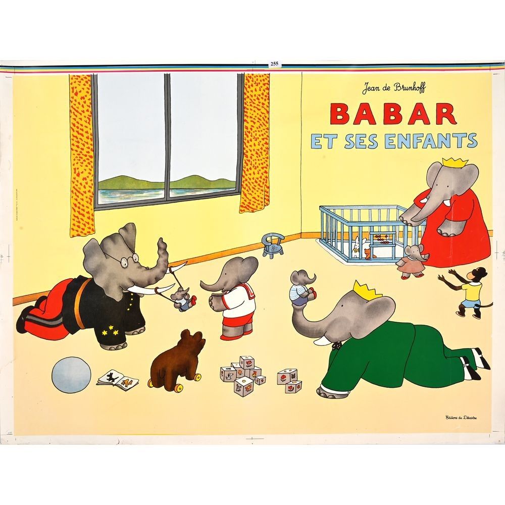 DE BRUNOFF Jean (1899-1937). LOT of 3 posters including Babar, Babar à la neige and Babar et ses enfants. 1990. Edition du Désastre. H.80 L.60.