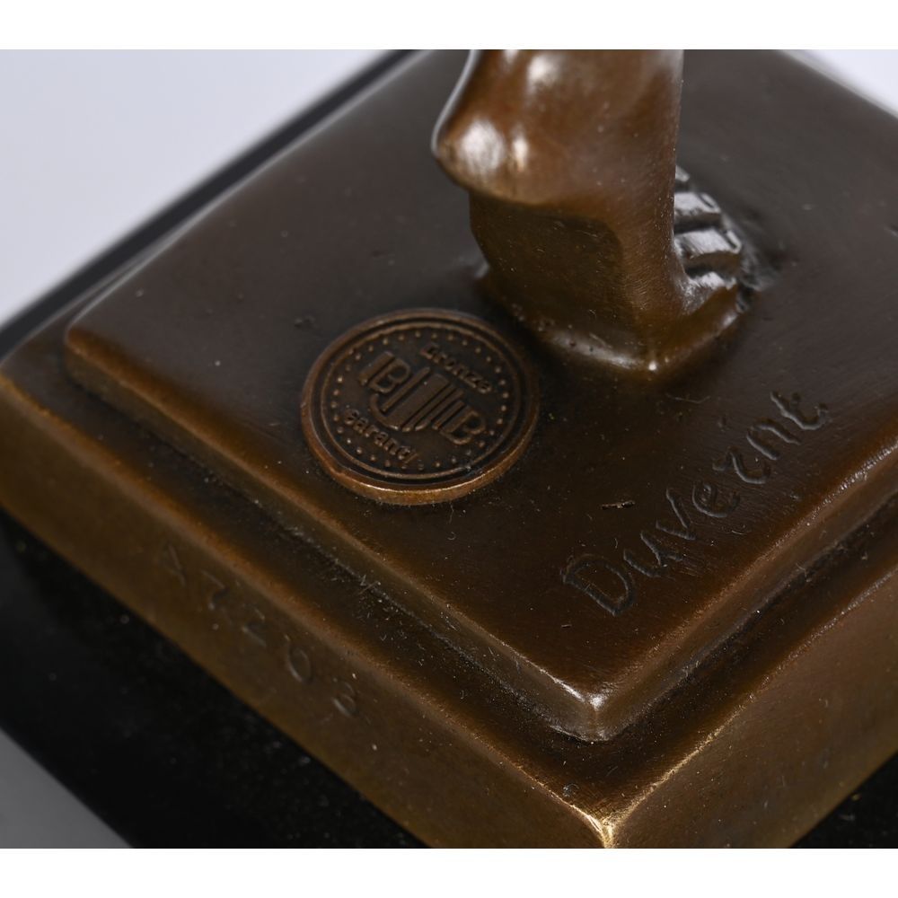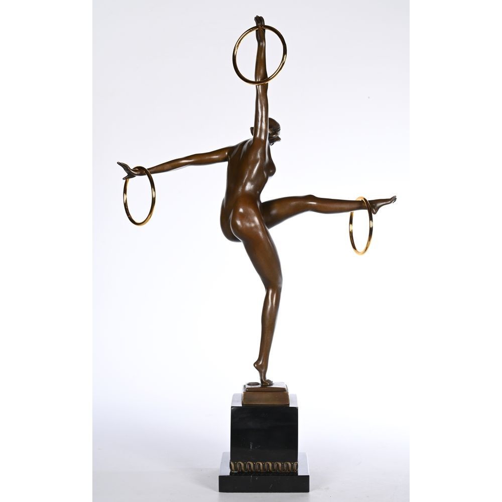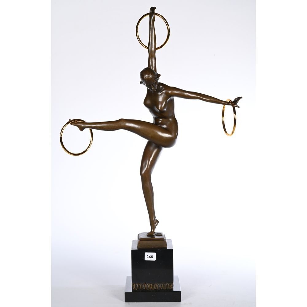 DUVERNE. "La danseuse aux arceaux". Bronze with brown patina. Black marble base. Total height 59 cm.