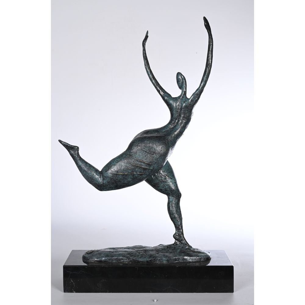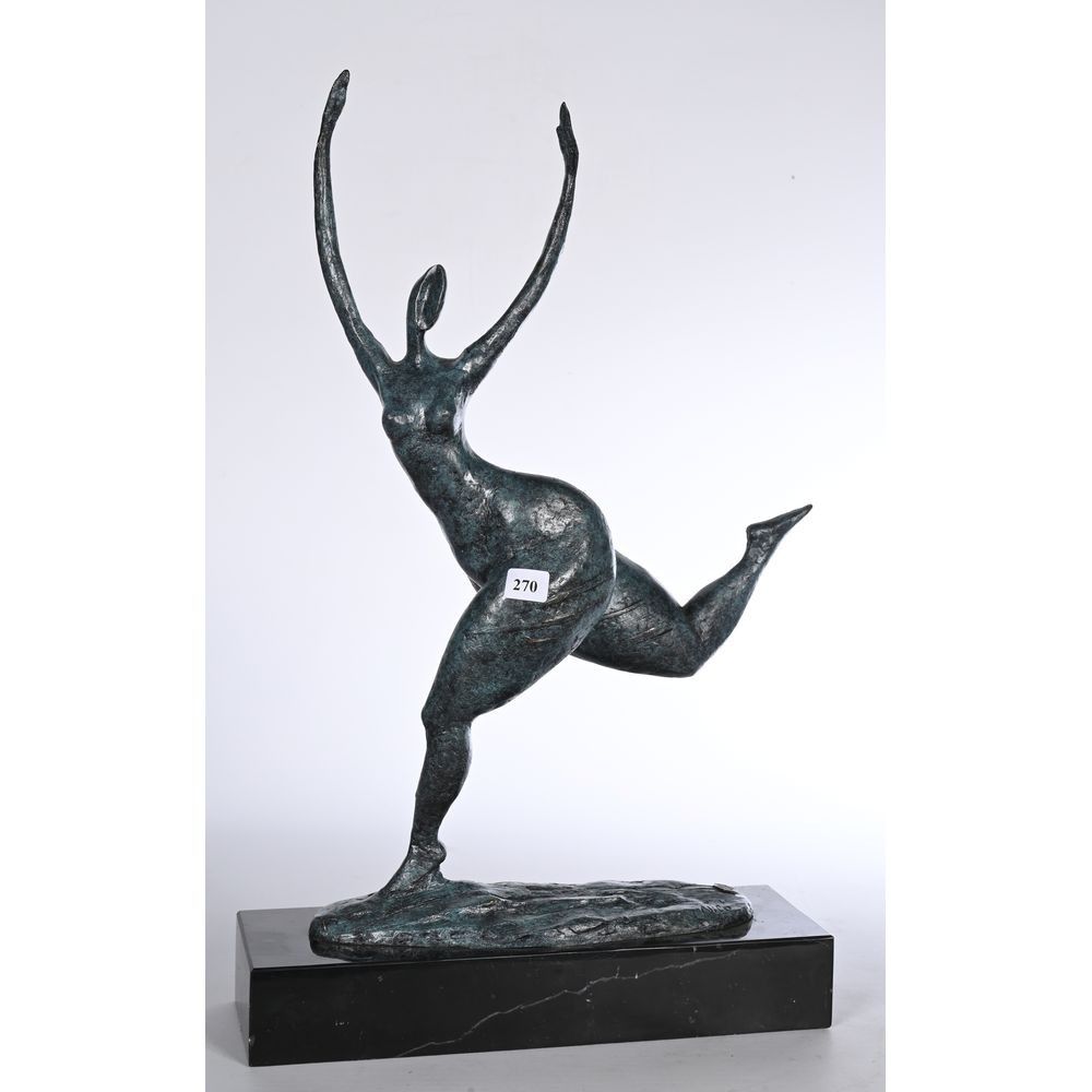 MILO. "Woman running". Bronze with bluish patina. Black marble base. Total height 51 L 31 D 11.