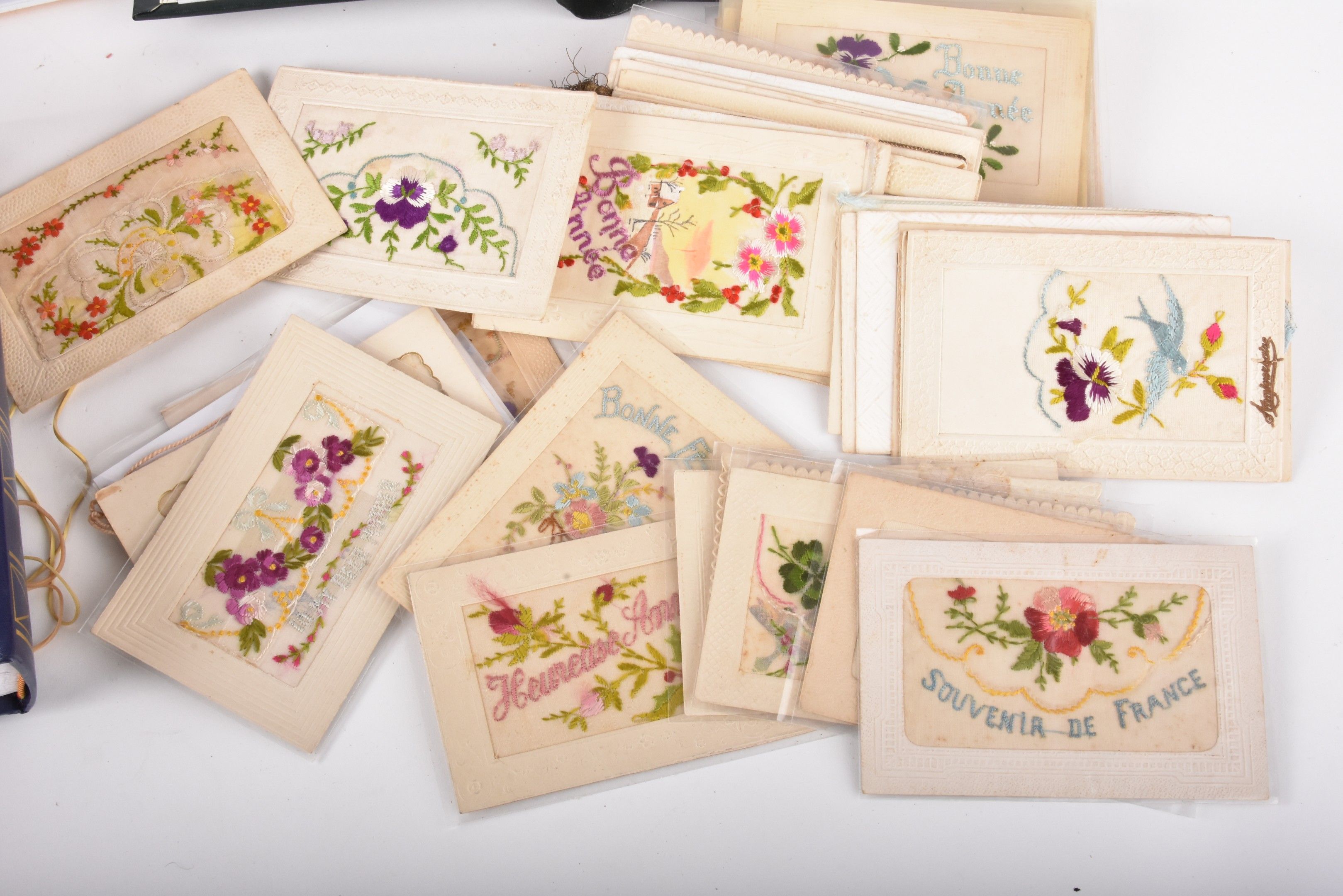 Lot of old embroidered and fancy postcards. A small batch of Belgium postcards is attached.